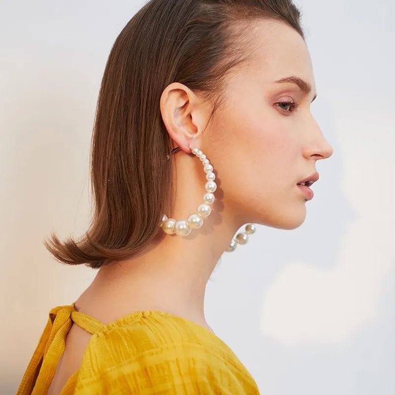Don't miss out on the chance to own these stunning earrings. Order your Pearl Girl Glam hoop earrings today and step up your accessory game. With their trendy design and comfortable fit, they are sure to become your new favorite pair of earrings!