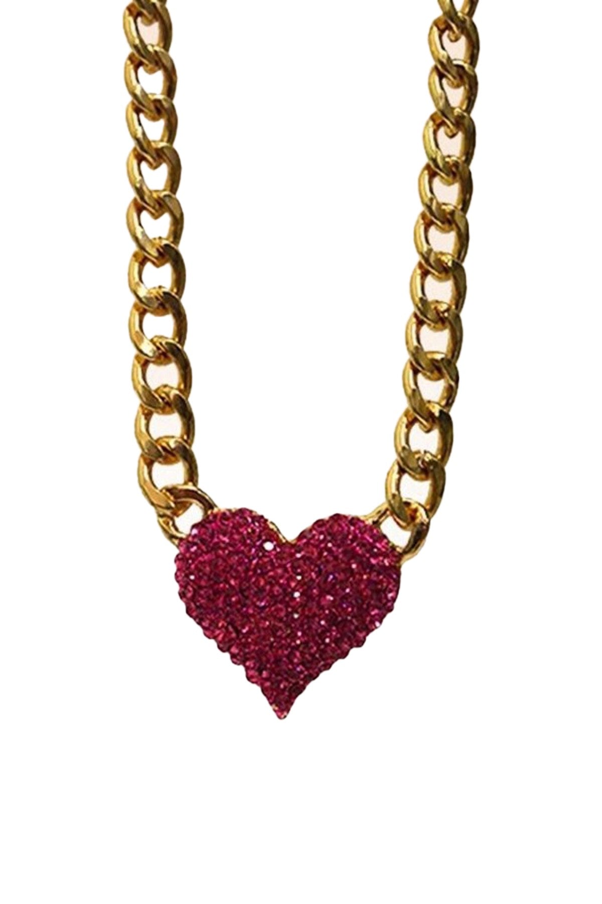 The Pendant Chunky Chain Necklace is meticulously crafted with gold and rhodium plating, ensuring a luxurious finish that resists tarnishing and wear. The combination of these metals not only enhances the necklace's aesthetic appeal but also provides a robust structure that can withstand daily use. The heart pendant is adorned with a beautiful stone color that catches the light beautifully, making it a standout piece in your jewelry collection.