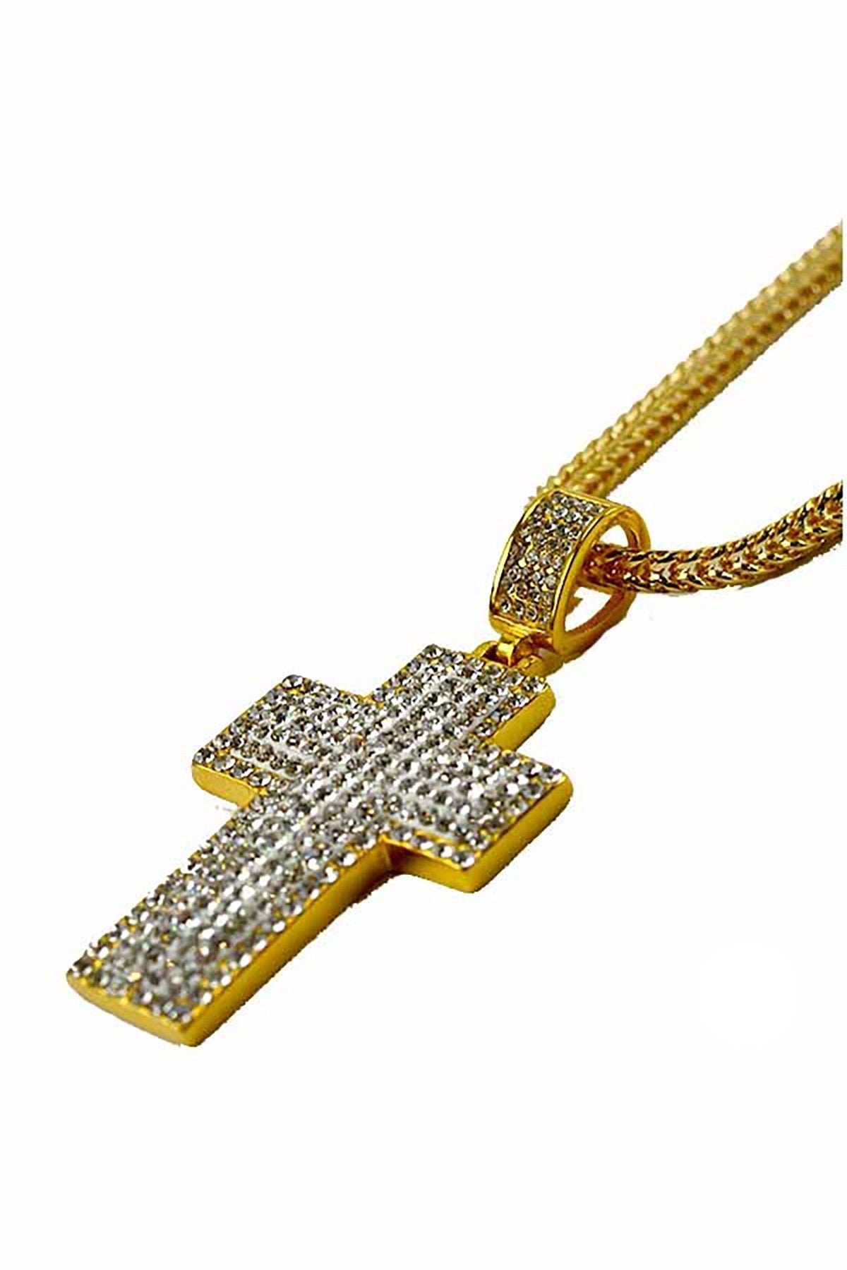 Elegant crystal cross pendant necklace with a fox chain, showcasing its intricate design and quality craftsmanship.