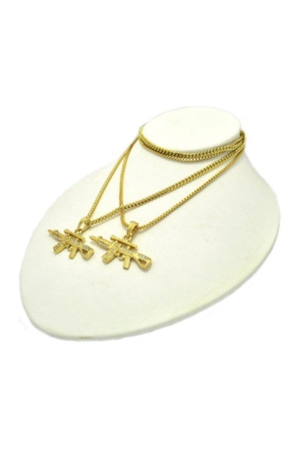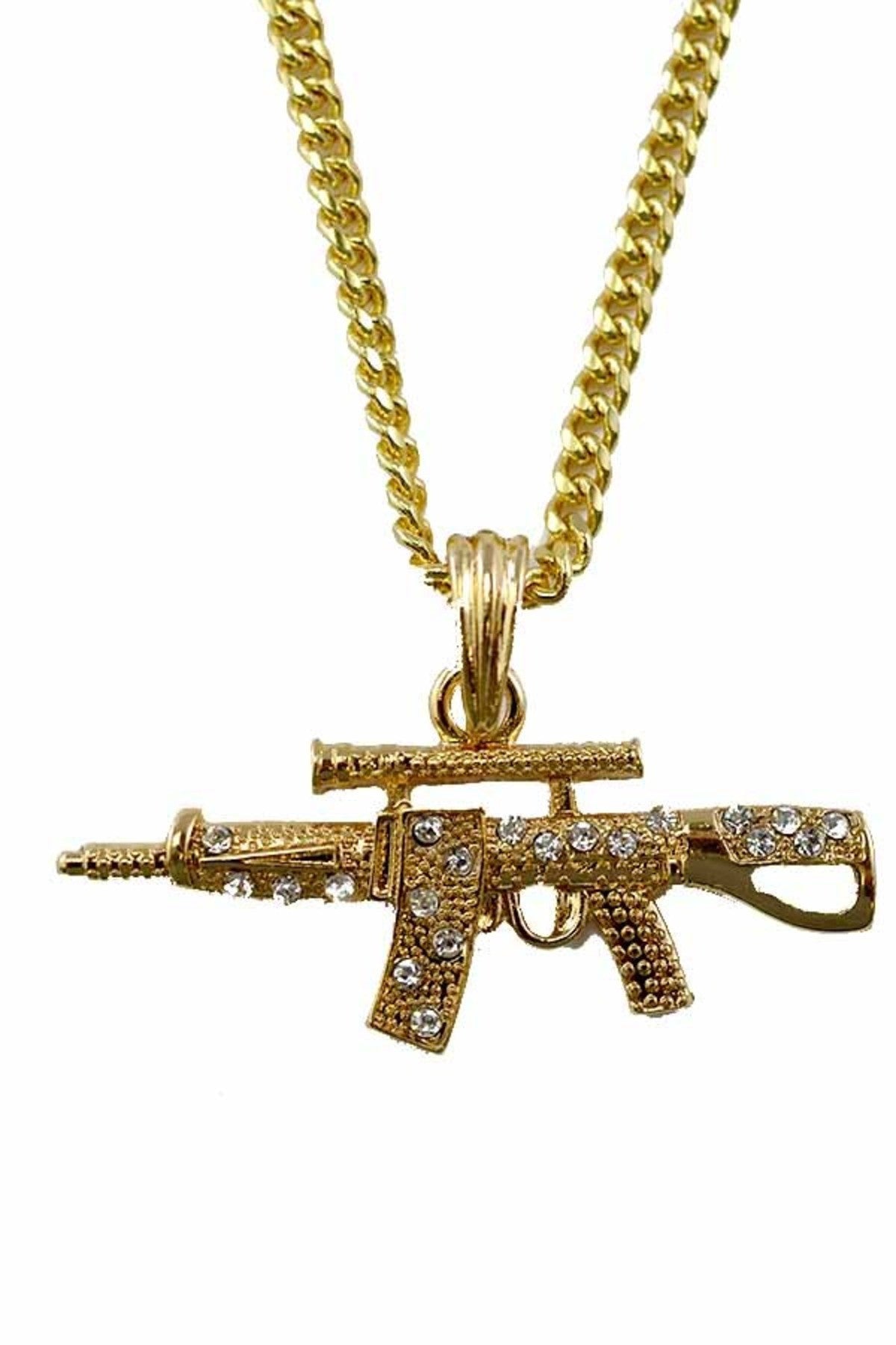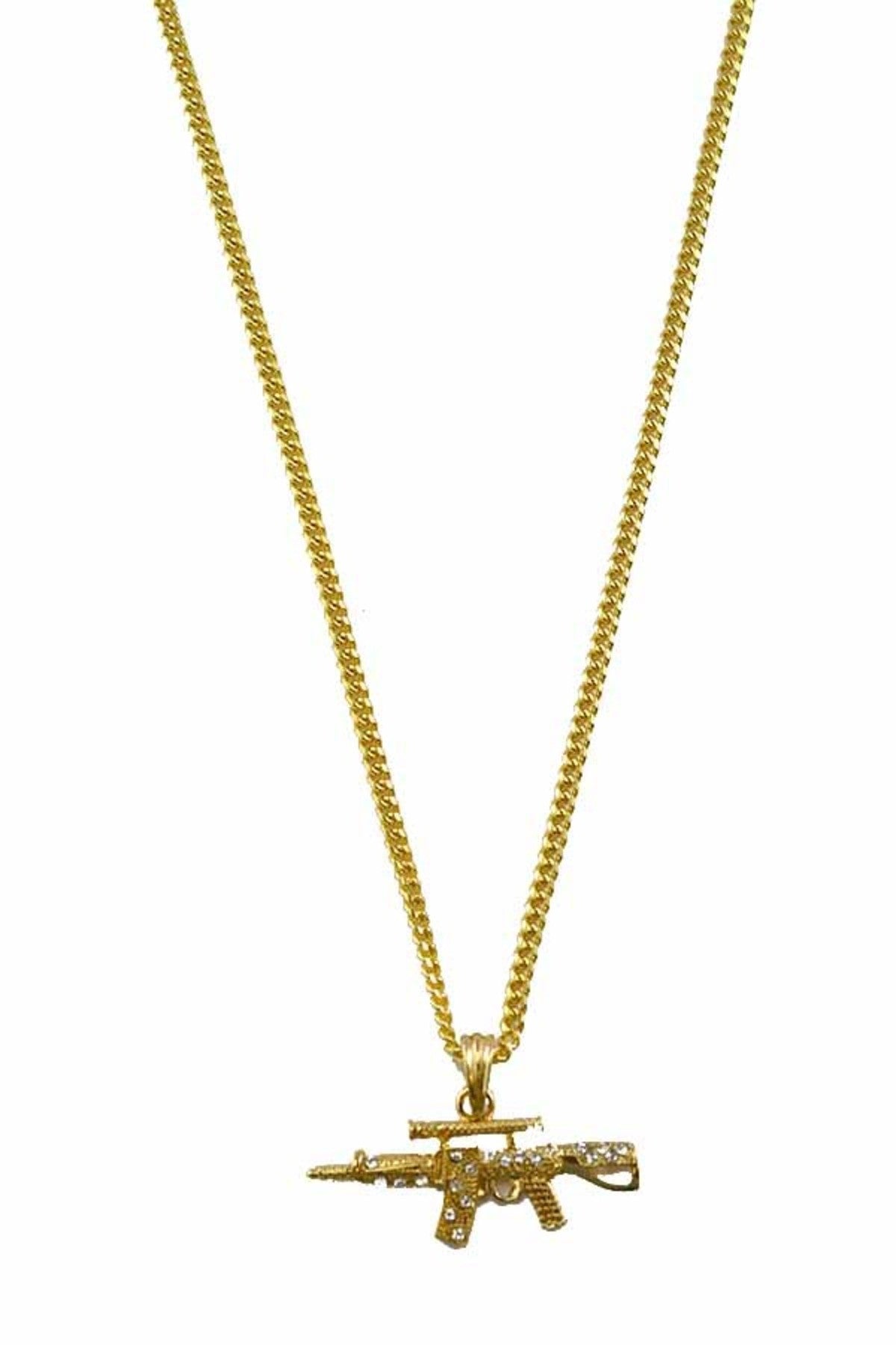 The design of this pendant necklace is inspired by hip hop culture, making it an ideal accessory for anyone looking to express their individuality. The machine gun motif adds an edgy touch, perfect for those who appreciate streetwear and urban fashion. Whether you're dressing up for a night out or adding flair to your everyday look, this necklace is versatile enough to complement any outfit.