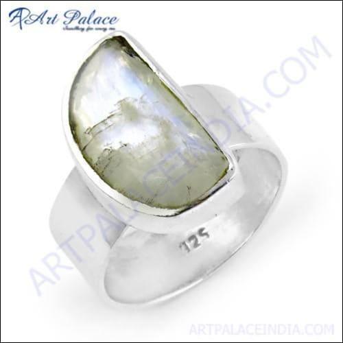 A beautiful Rainbow Moonstone Silver Ring showcasing a shimmering white gemstone set in 925 silver, perfect for elegant occasions.