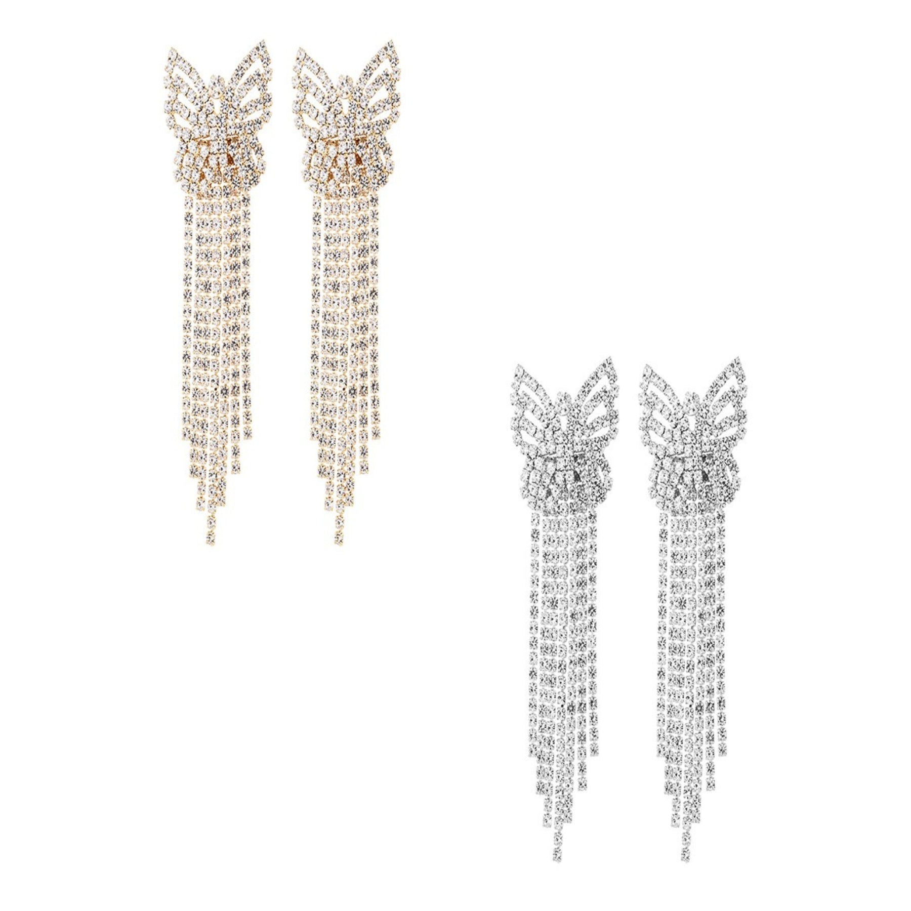 These earrings are incredibly versatile, making them a must-have addition to your jewelry collection. Whether you're dressing up for a wedding, a night out with friends, or simply want to add a touch of glamour to your everyday outfit, the Rhinestone Butterfly Tassel Earrings are the perfect choice. Pair them with a chic dress or a casual top to elevate your look effortlessly.