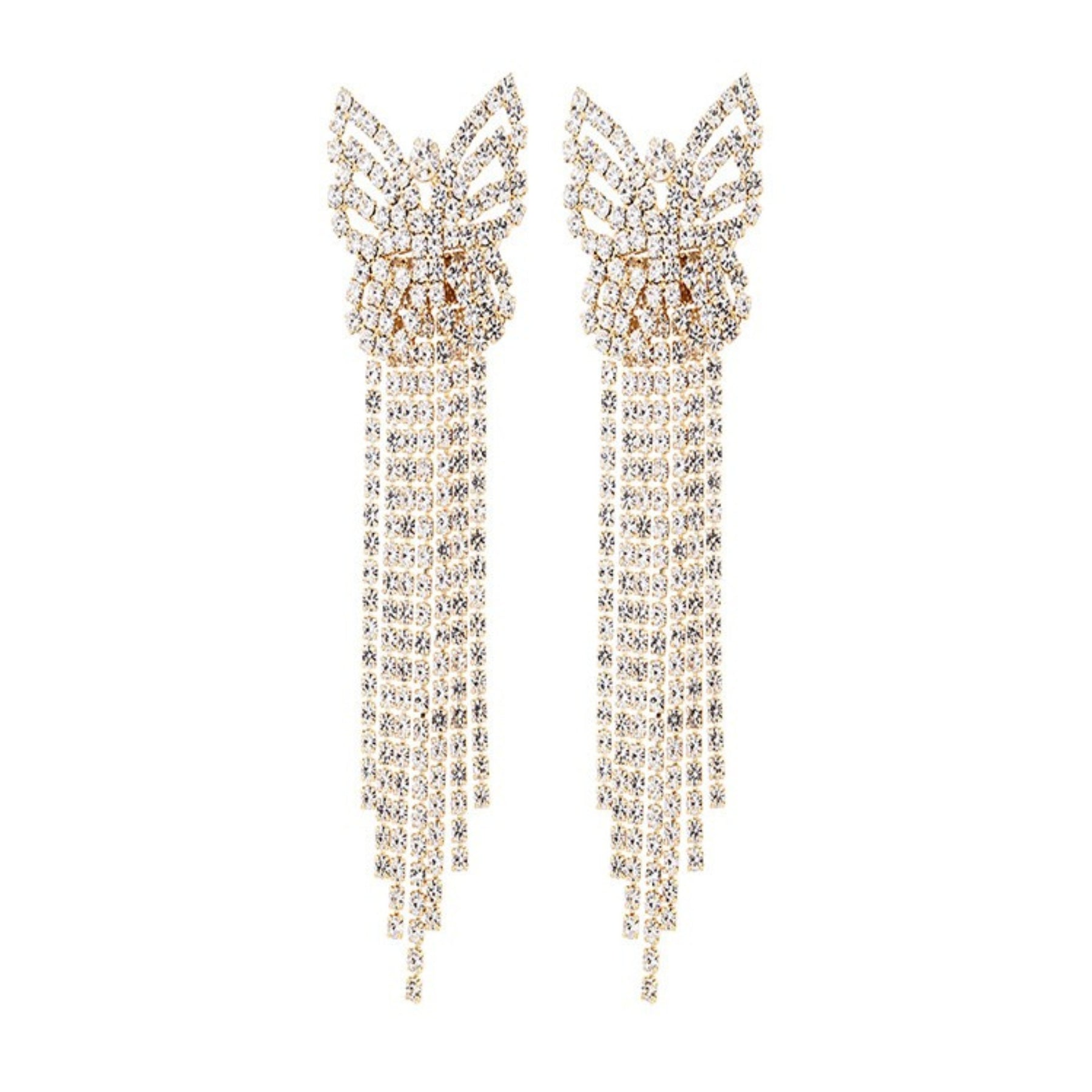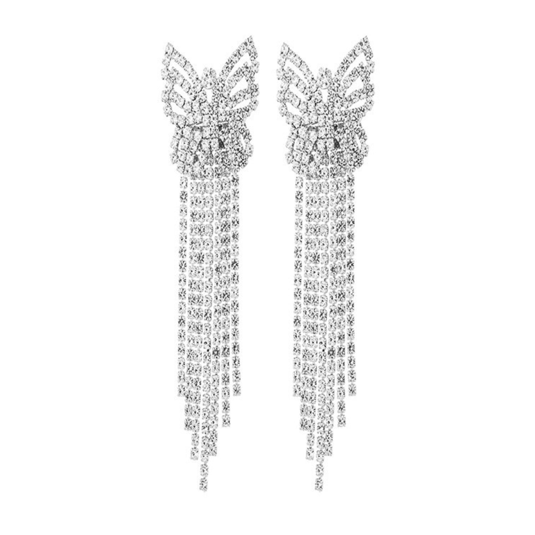 Elegant Rhinestone Butterfly Tassel Earrings with sparkling rhinestones and a stylish tassel drop design.