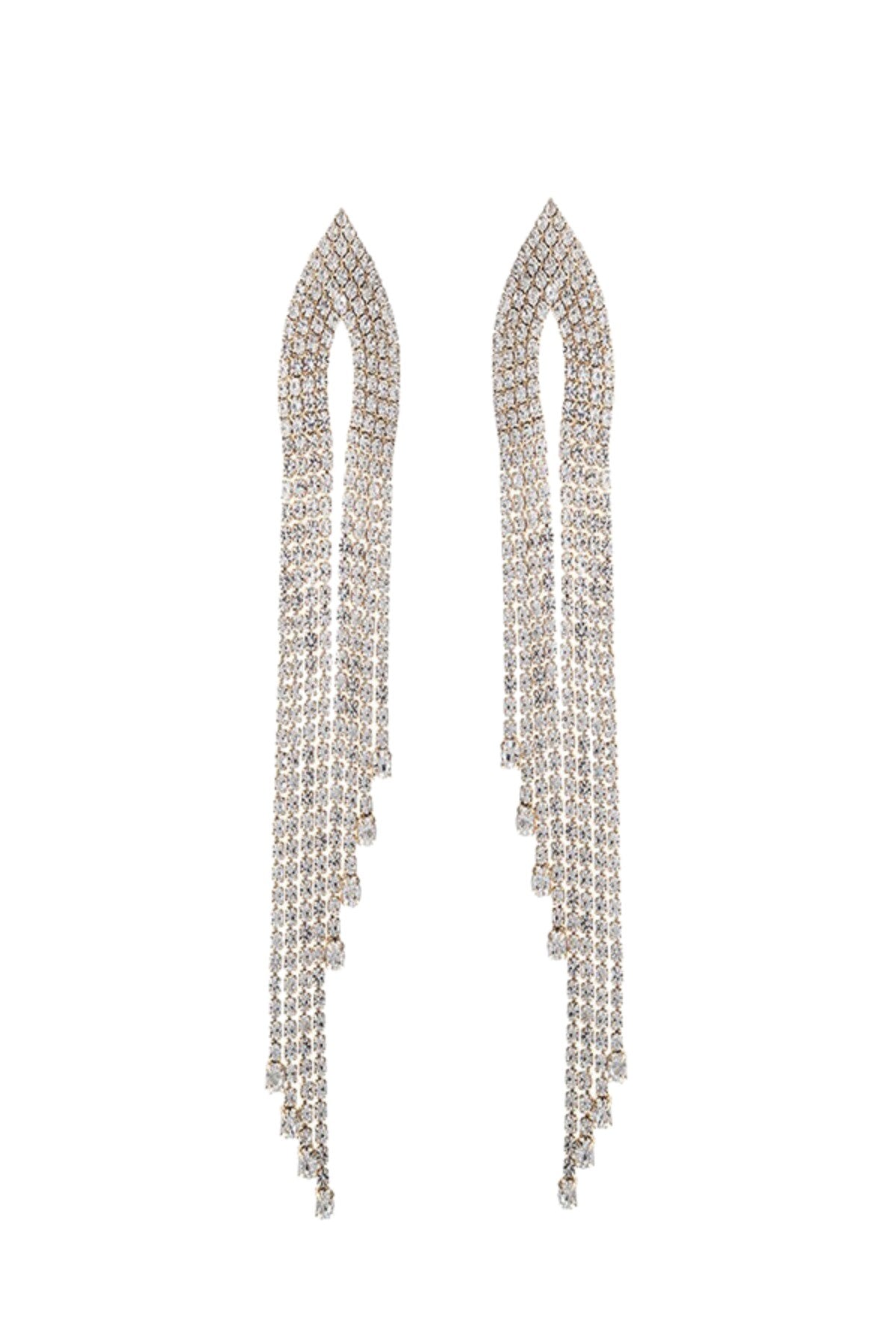 Elegant Rhinestone Marquise Fringe Post Earrings showcasing a stunning design with sparkling rhinestones and fringe detail.