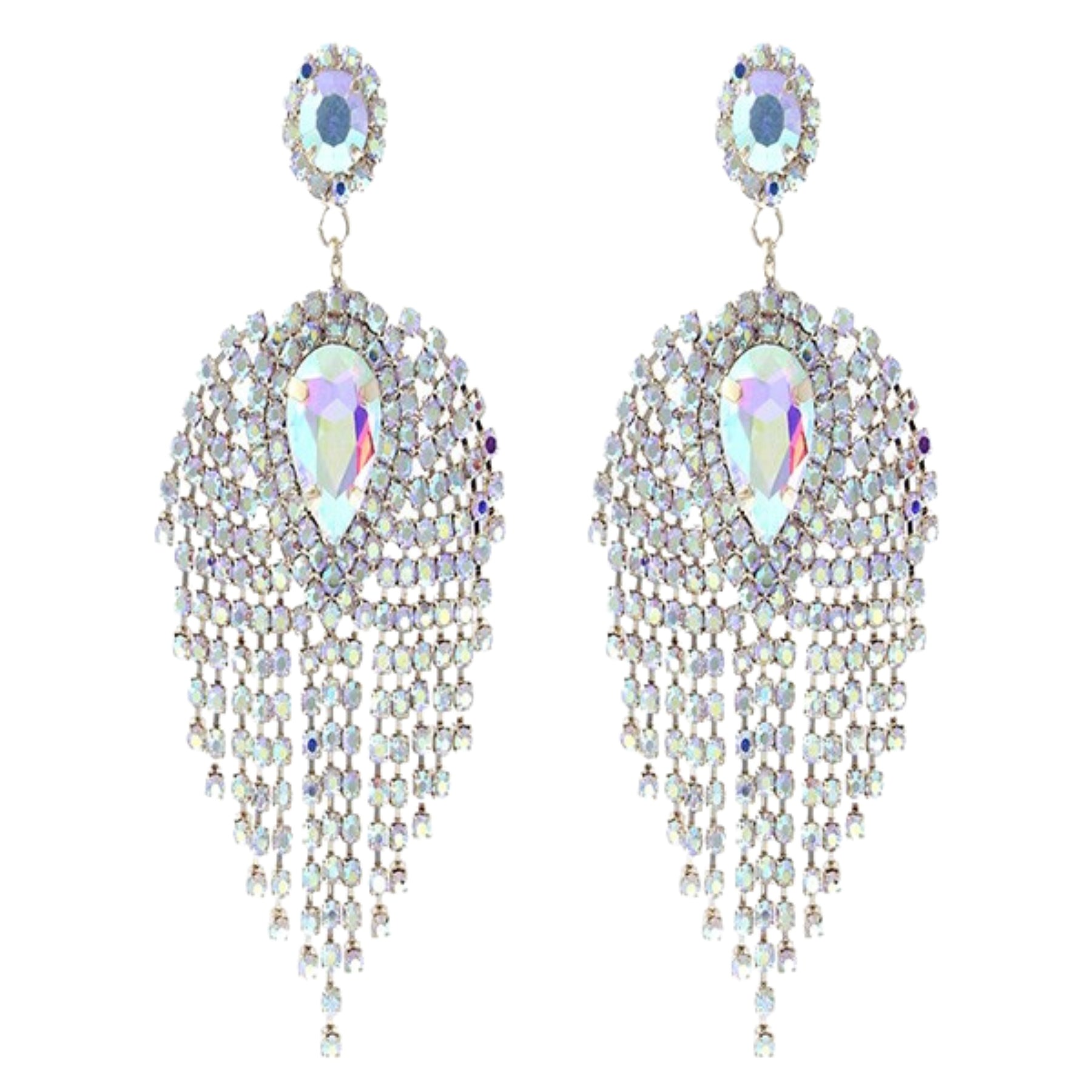 Crafted with meticulous attention to detail, these earrings feature a unique fringe design that adds movement and dimension. The teardrop shape is not only flattering but also enhances the overall aesthetic appeal. Each rhinestone is carefully set to ensure maximum sparkle, making these earrings a standout piece in your jewelry collection.