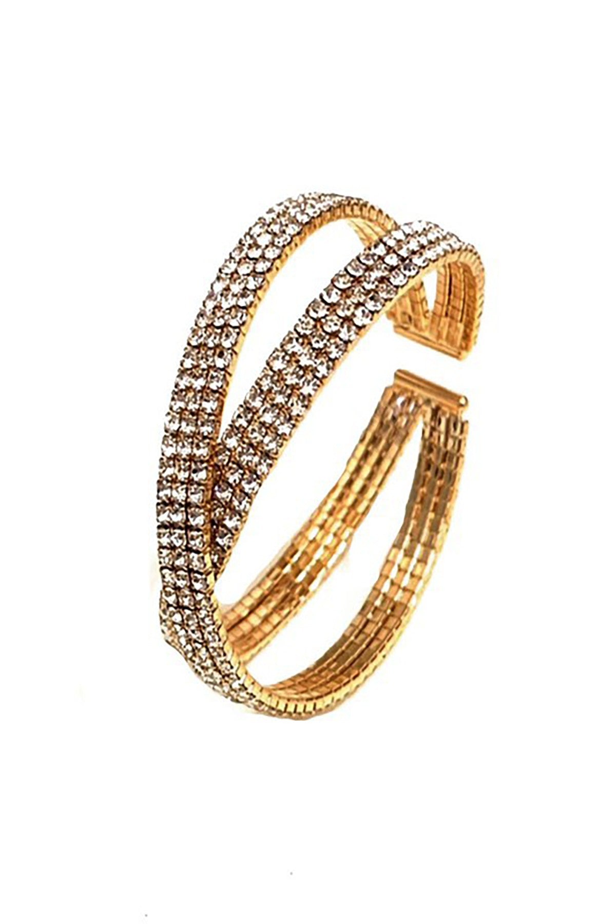The Rhinestone Wire Bracelet can be styled in numerous ways. Pair it with a simple dress for a chic look, or wear it alongside other bracelets for a trendy stacked effect. Its versatility allows it to complement a wide range of outfits, from casual to formal. You can also mix and match it with other jewelry pieces to create your unique style statement.