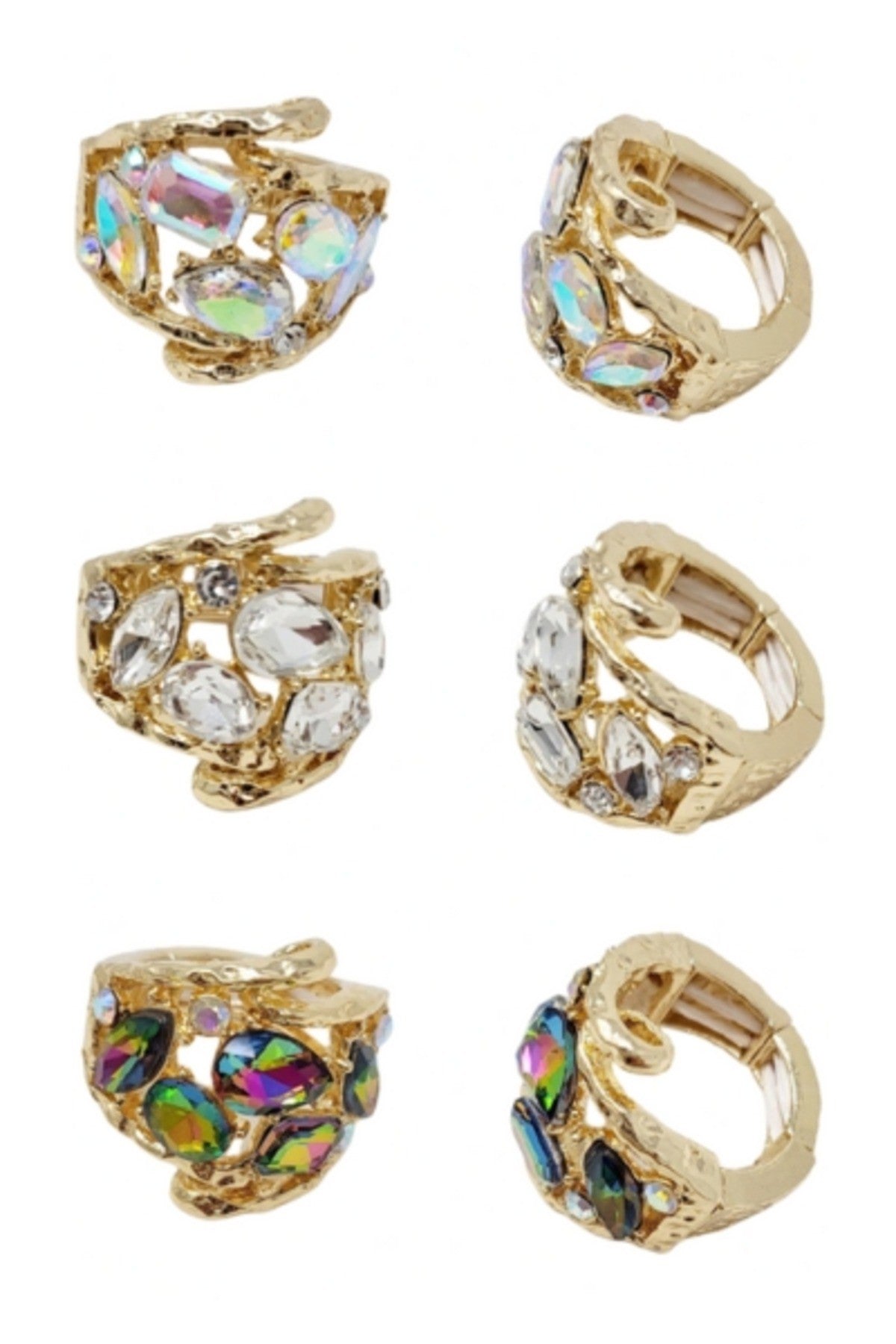A stunning multi crystal stone ring featuring vibrant colors and a stretchy design, perfect for any occasion.