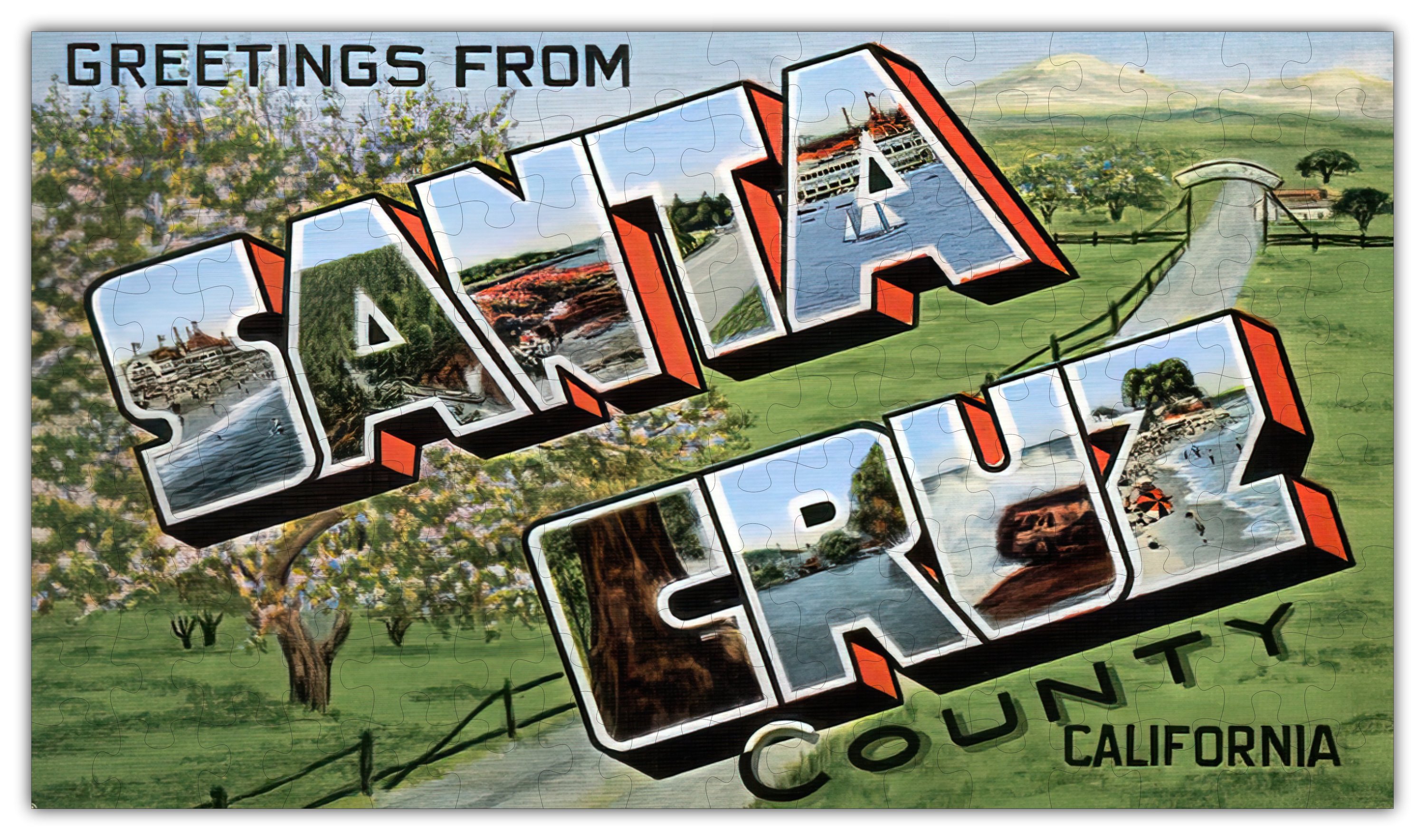 Discover the Santa Cruz Puzzle, a beautifully crafted jigsaw puzzle that combines quality, sustainability, and nostalgia. Measuring 18" x 10" and consisting of 303 pieces, this puzzle is perfect for puzzle enthusiasts and families alike. Each puzzle comes individually packaged in a sturdy cardboard box, featuring an image of the completed puzzle on the front, along with a burlap bag to keep the pieces organized. Whether you're looking for a fun activity or a decorative piece for your home, the Santa Cruz Puzzle is an excellent choice.