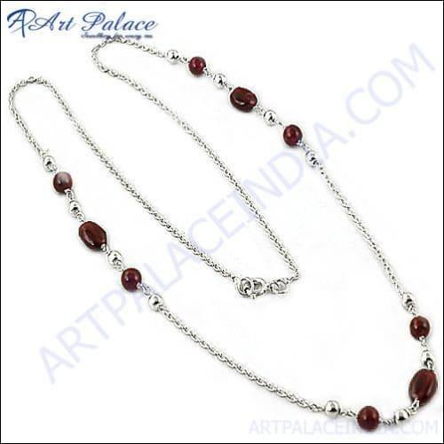 Experience luxury like never before with the Latest Luxury Garnet Gemstone Silver Necklace from Art Palace. This exquisite piece is not just an accessory; it is a statement of style and elegance. The mesmerizing effect of the garnet gemstone will draw compliments and admiration, making it a must-have addition to your jewelry collection.