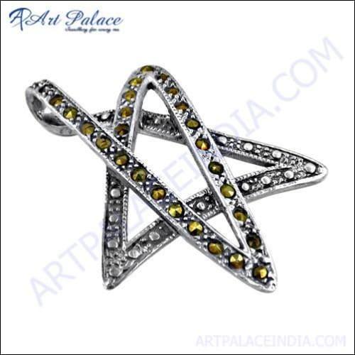 This pendant makes for an excellent gift for birthdays, anniversaries, or any special occasion. Its unique design and high-quality materials ensure that it will be cherished for years to come. Whether you are looking to surprise a loved one or simply want to add a stunning piece to your own jewelry collection, the Star-Shaped Gun Metal Gemstone Silver Marcasite Pendant is an ideal choice.