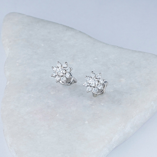 Sterling Silver Earring Studs with 18 Round-Cut Lab-Created Diamonds