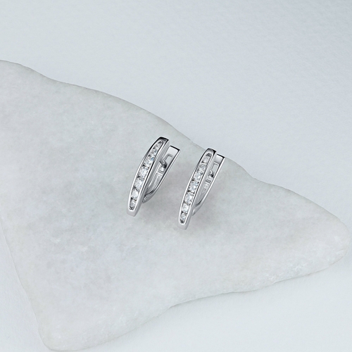 Sterling Silver Earrings with 14 Round-Cut Lab-Created Diamonds 0.425