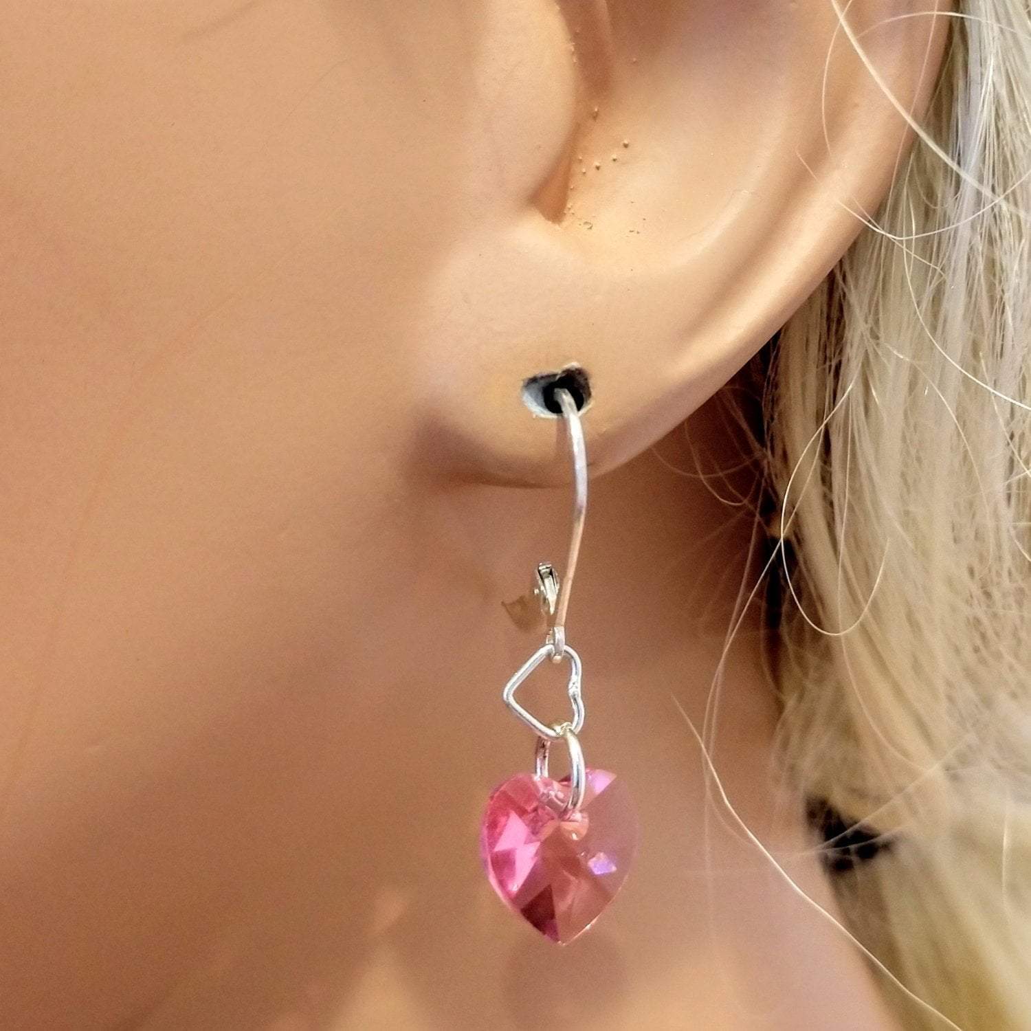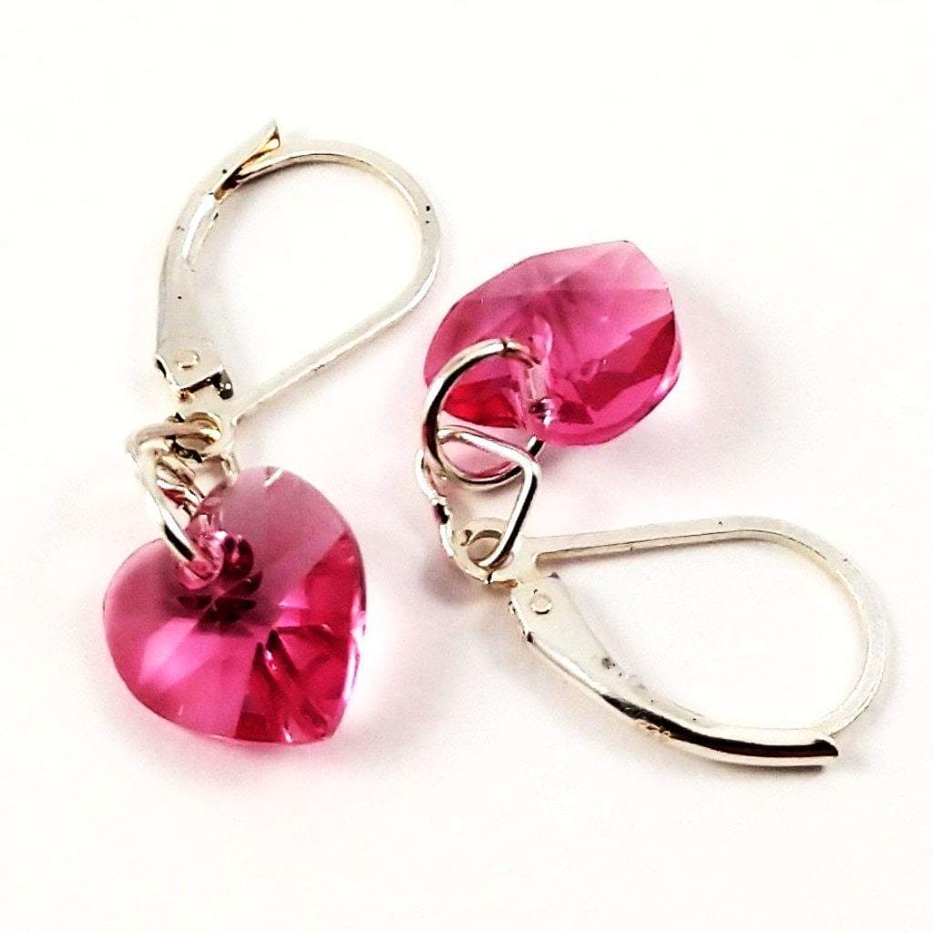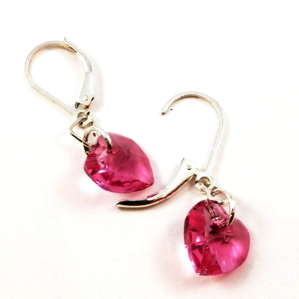 Introducing our exquisite Sterling Silver Pink Crystal Heart Earrings, a perfect blend of elegance and charm. These handmade earrings are designed to add a touch of femininity to any outfit, making them an essential accessory for every jewelry lover. Each earring features a stunning rose pink Swarovski Crystal heart pendant that sparkles beautifully in the light, ensuring you stand out on any occasion.