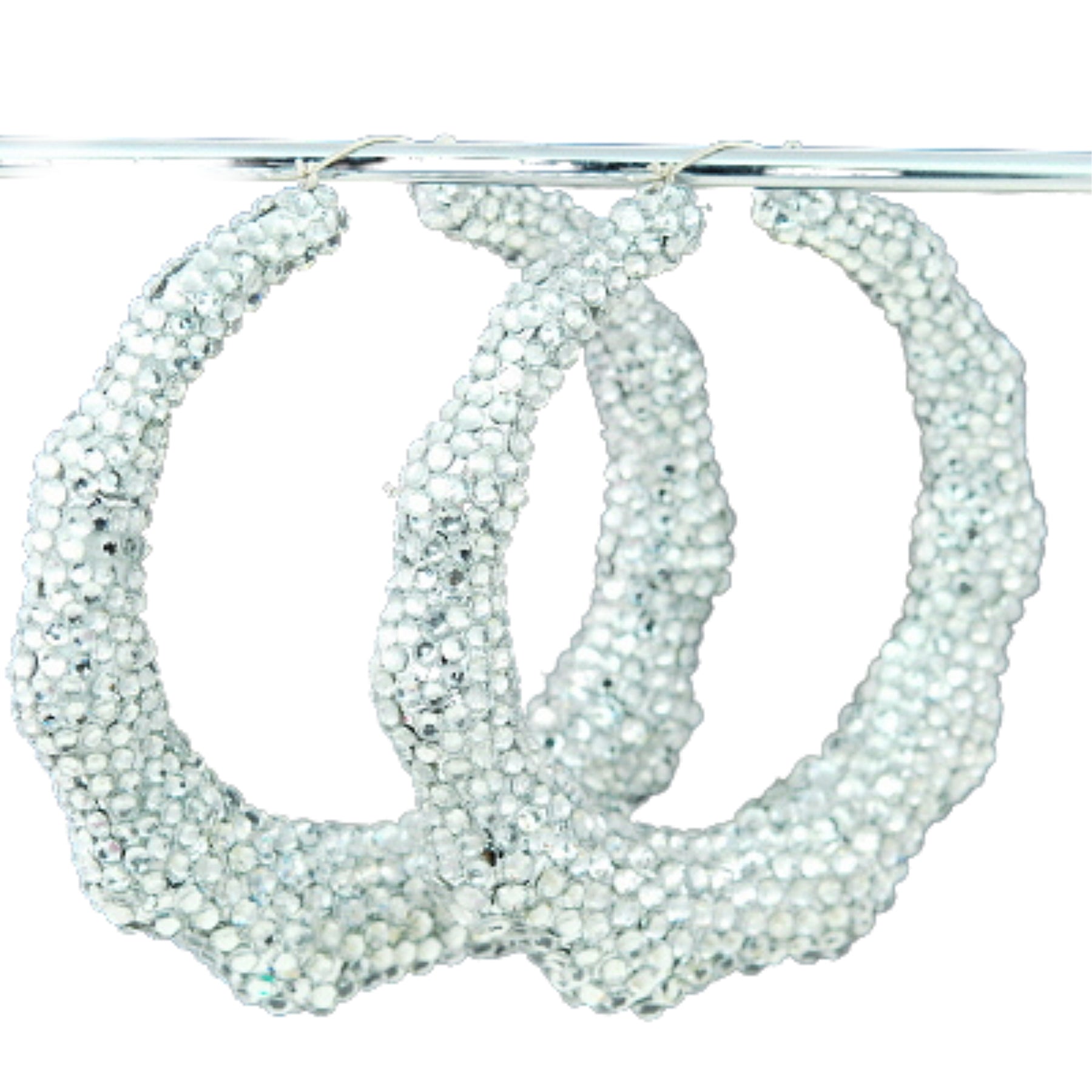 Introducing our stunning Studded Bamboo Hoop Earrings, a perfect blend of style and elegance. These large earrings are designed to make a statement, featuring a unique studded bamboo design that adds a touch of sophistication to any outfit. With a drop length of 3 1/2 inches, they are the ideal accessory for those who want to stand out in a crowd.