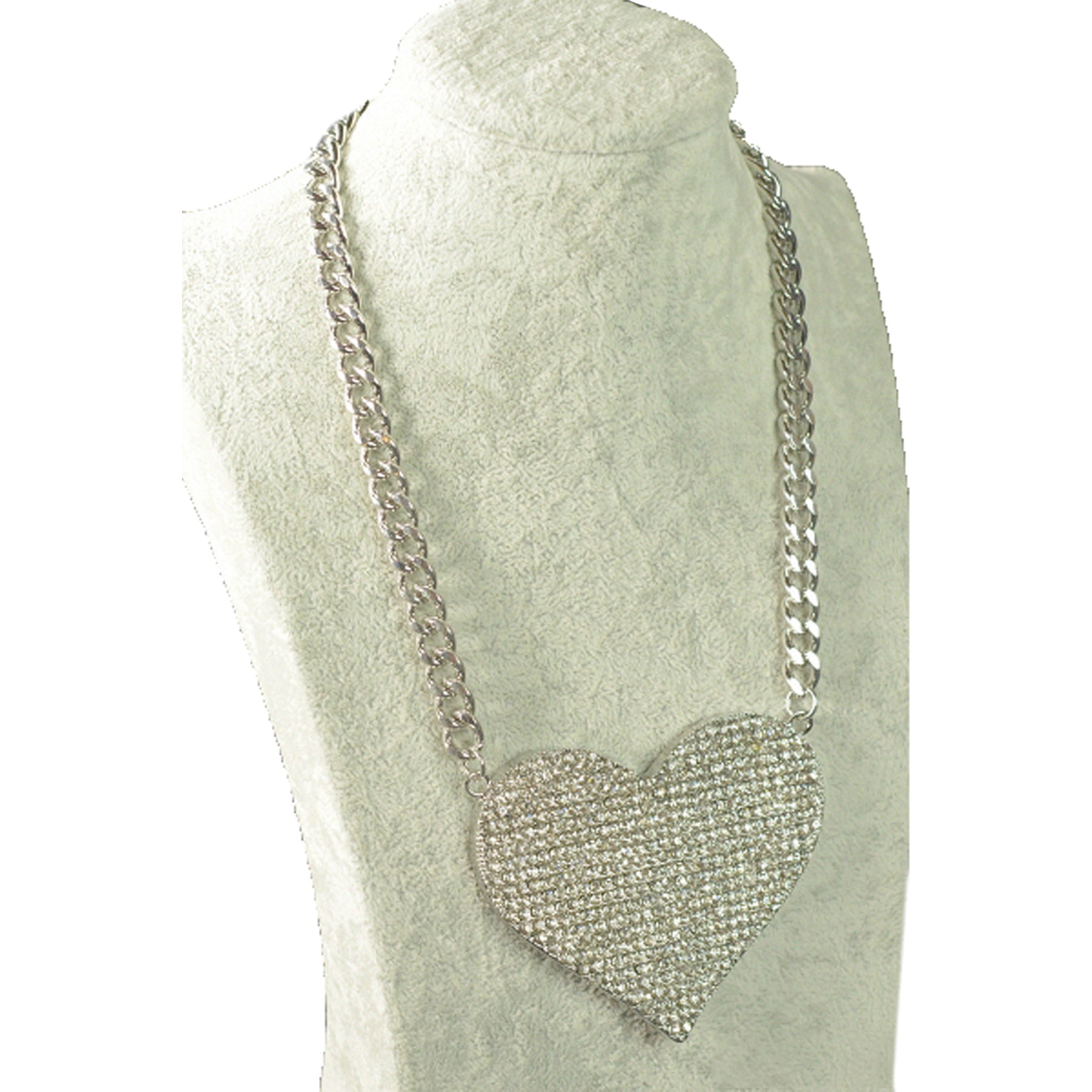 A stunning studded flat heart necklace with crystal embellishments, featuring a lobster claw clasp and extender.