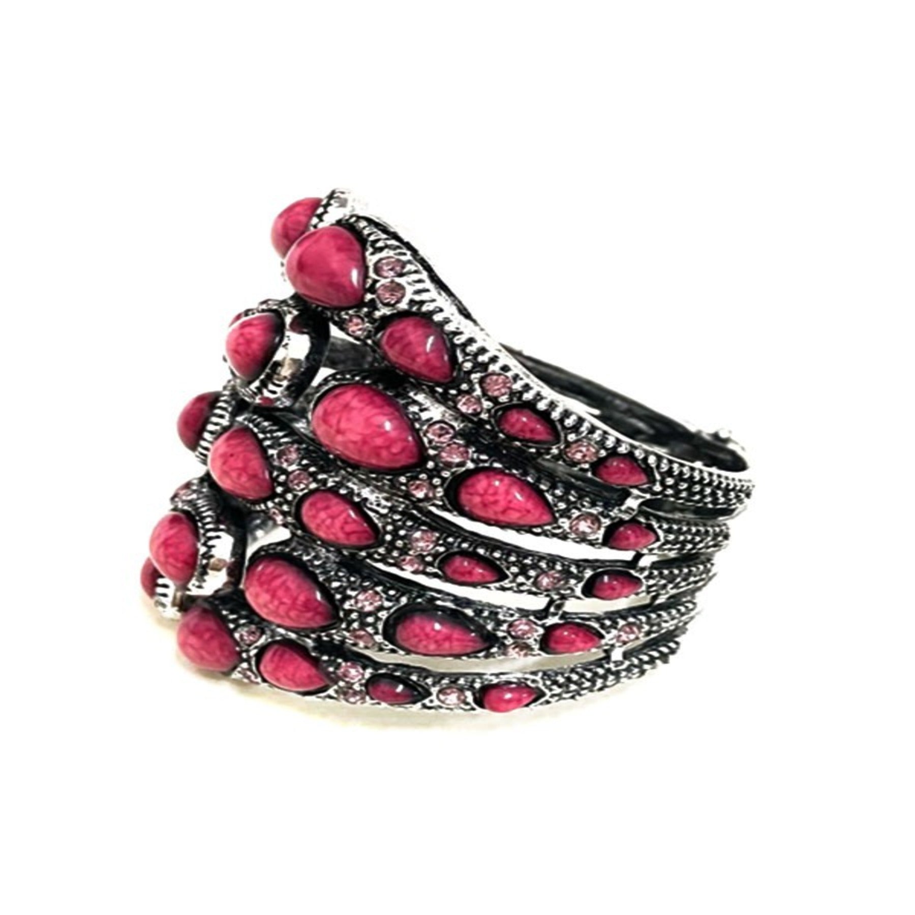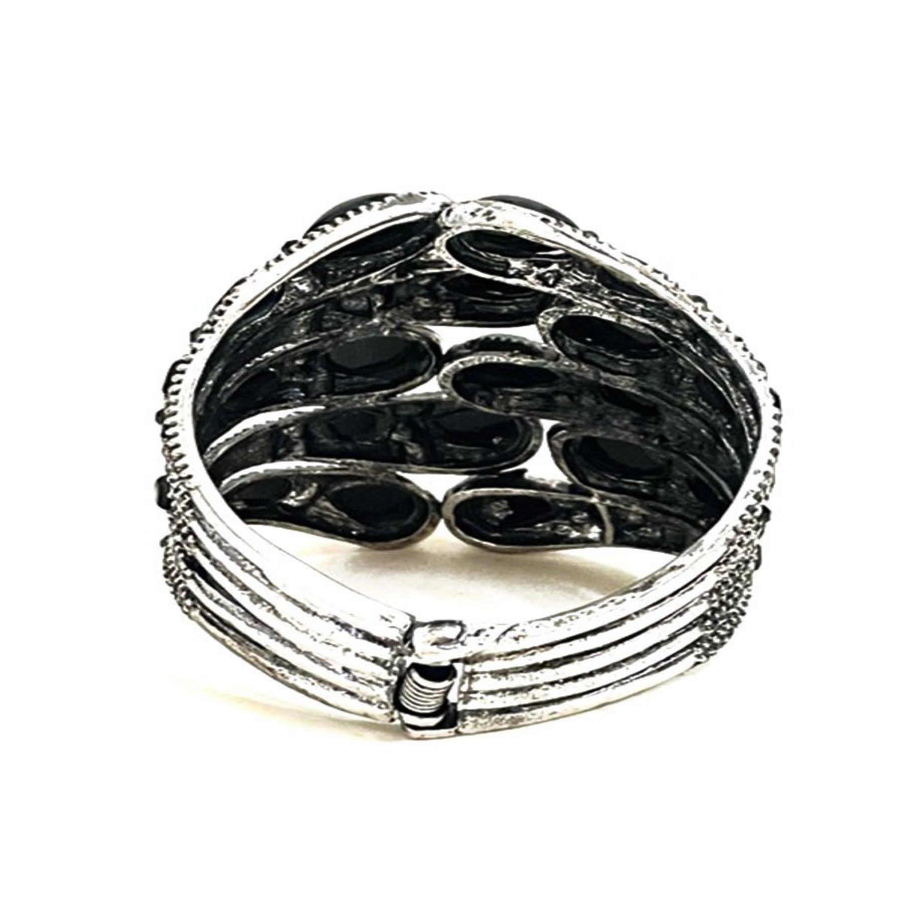 Stylish studded metal cuff bracelet with spring snap closure, showcasing a modern design perfect for any outfit.