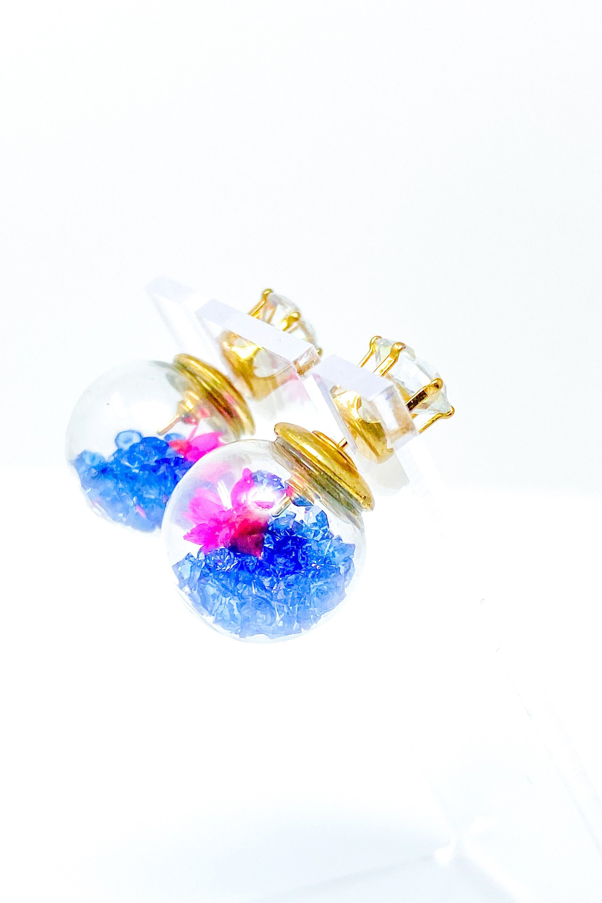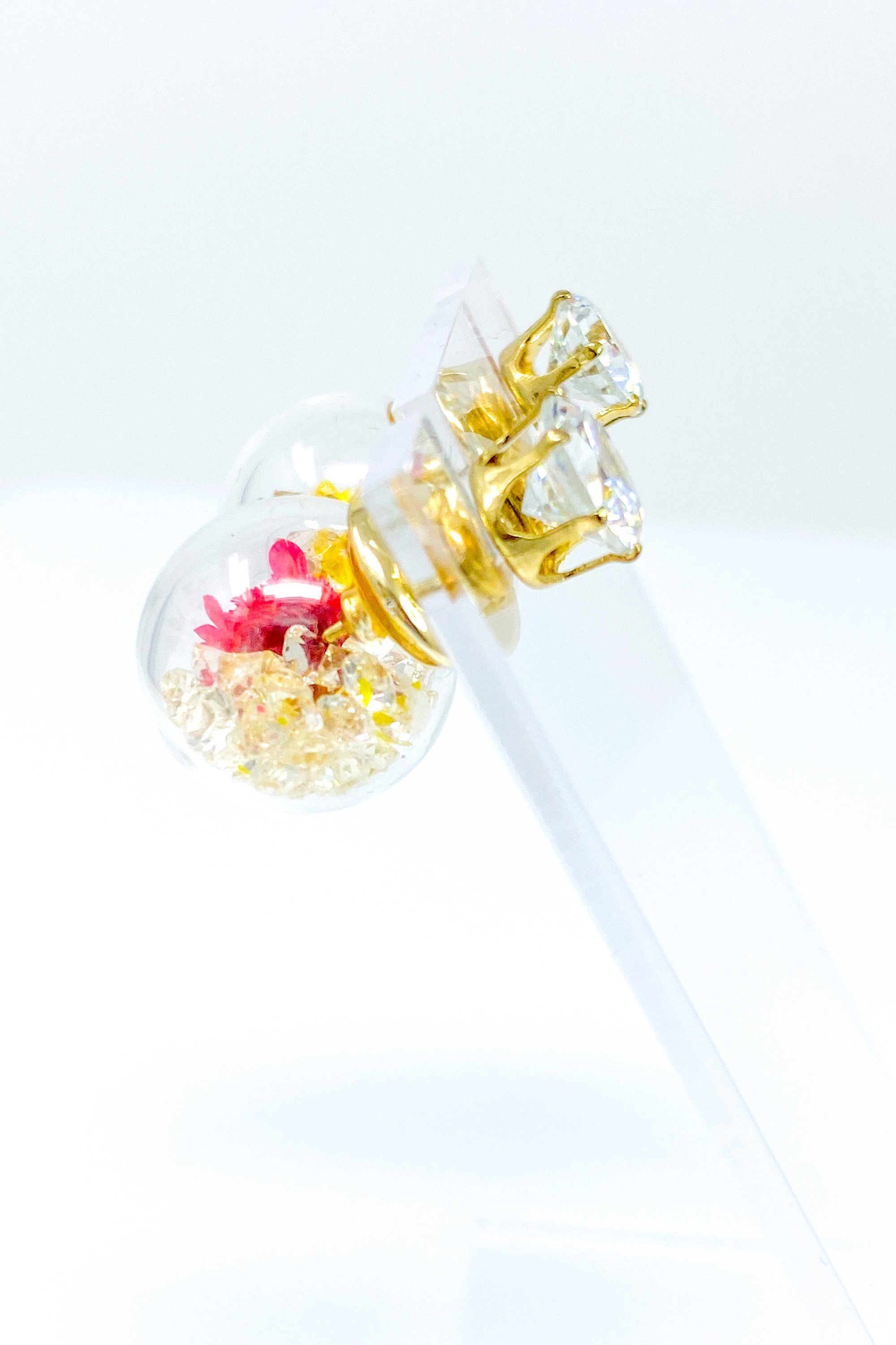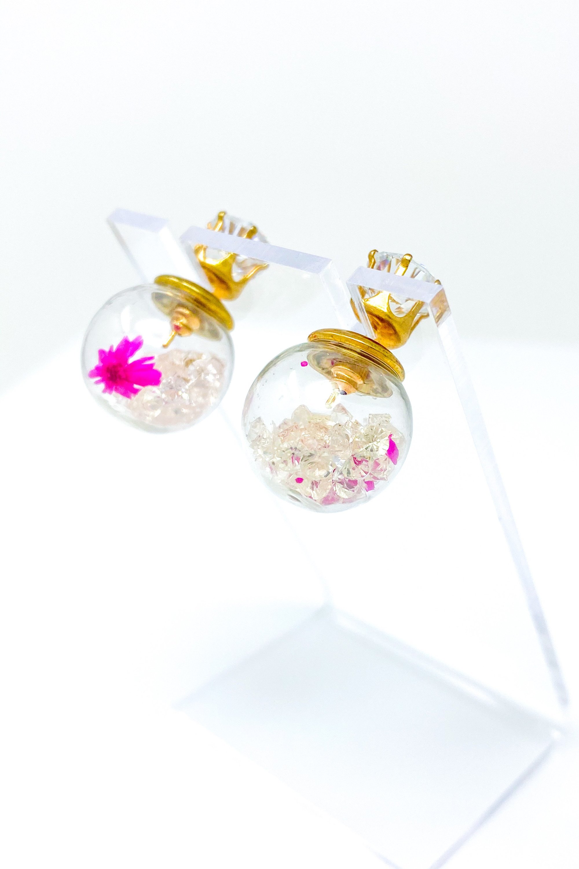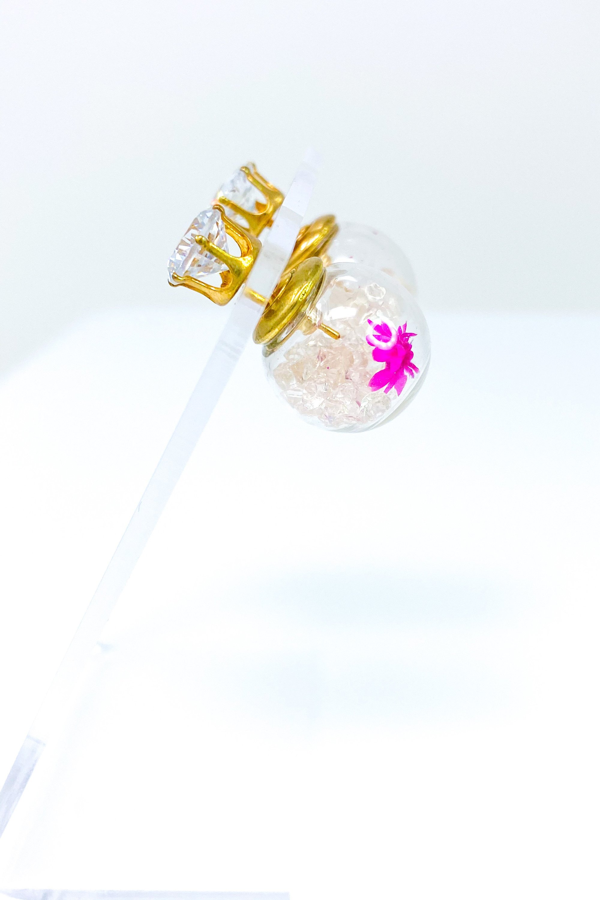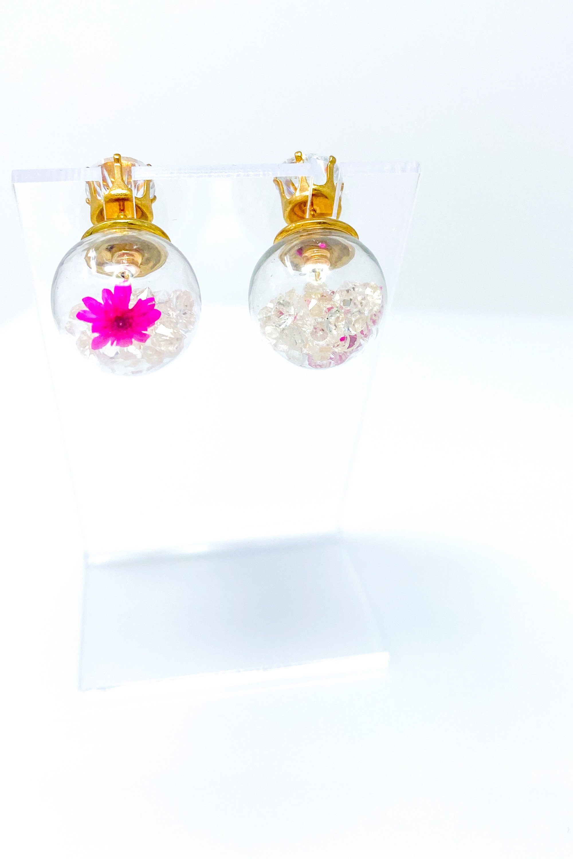 Introducing the stunning Perennial Ice Studs, a perfect blend of elegance and creativity. These unique earrings feature handcrafted moving flowers paired with a chic plastique ice ball design, making them a must-have accessory for any fashion enthusiast. Whether you're dressing up for a special occasion or adding flair to your everyday outfit, these studs will elevate your style effortlessly.