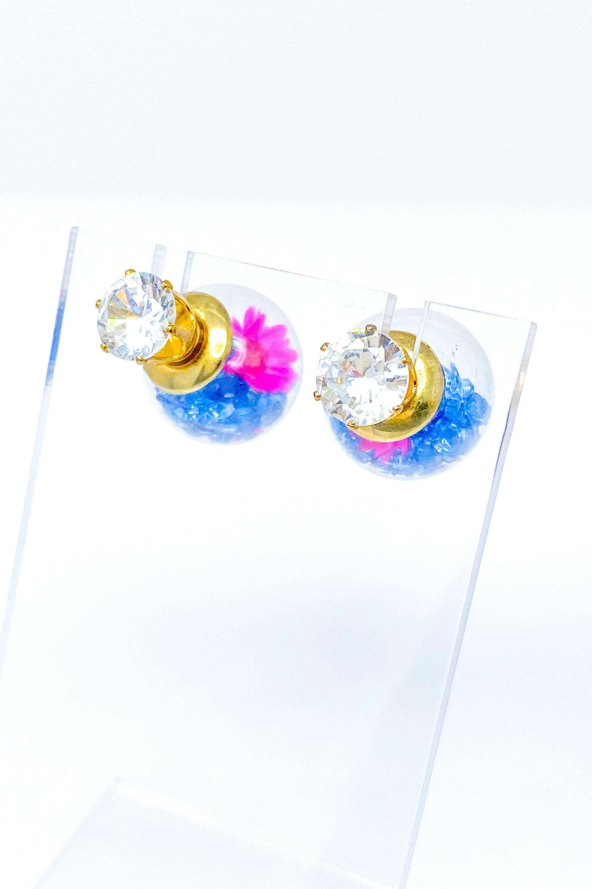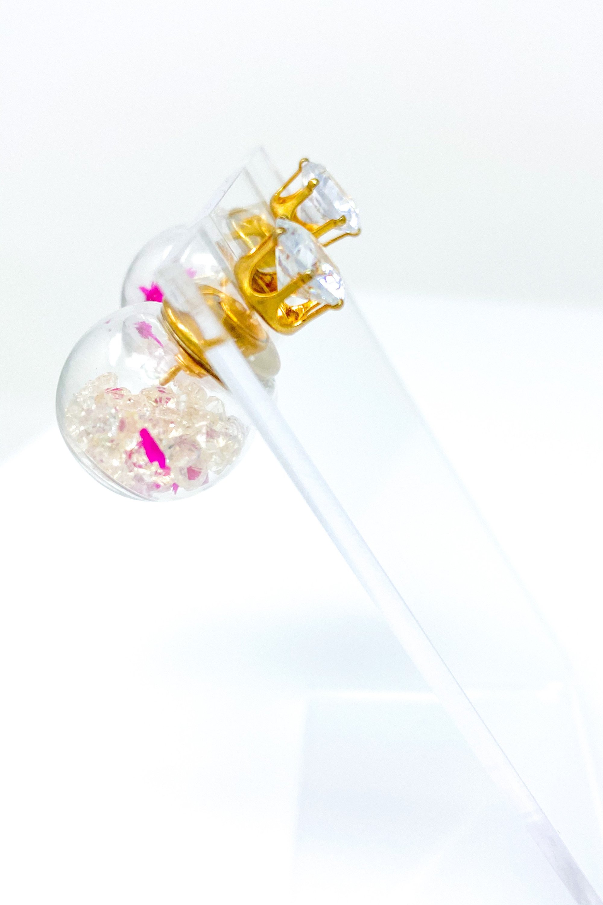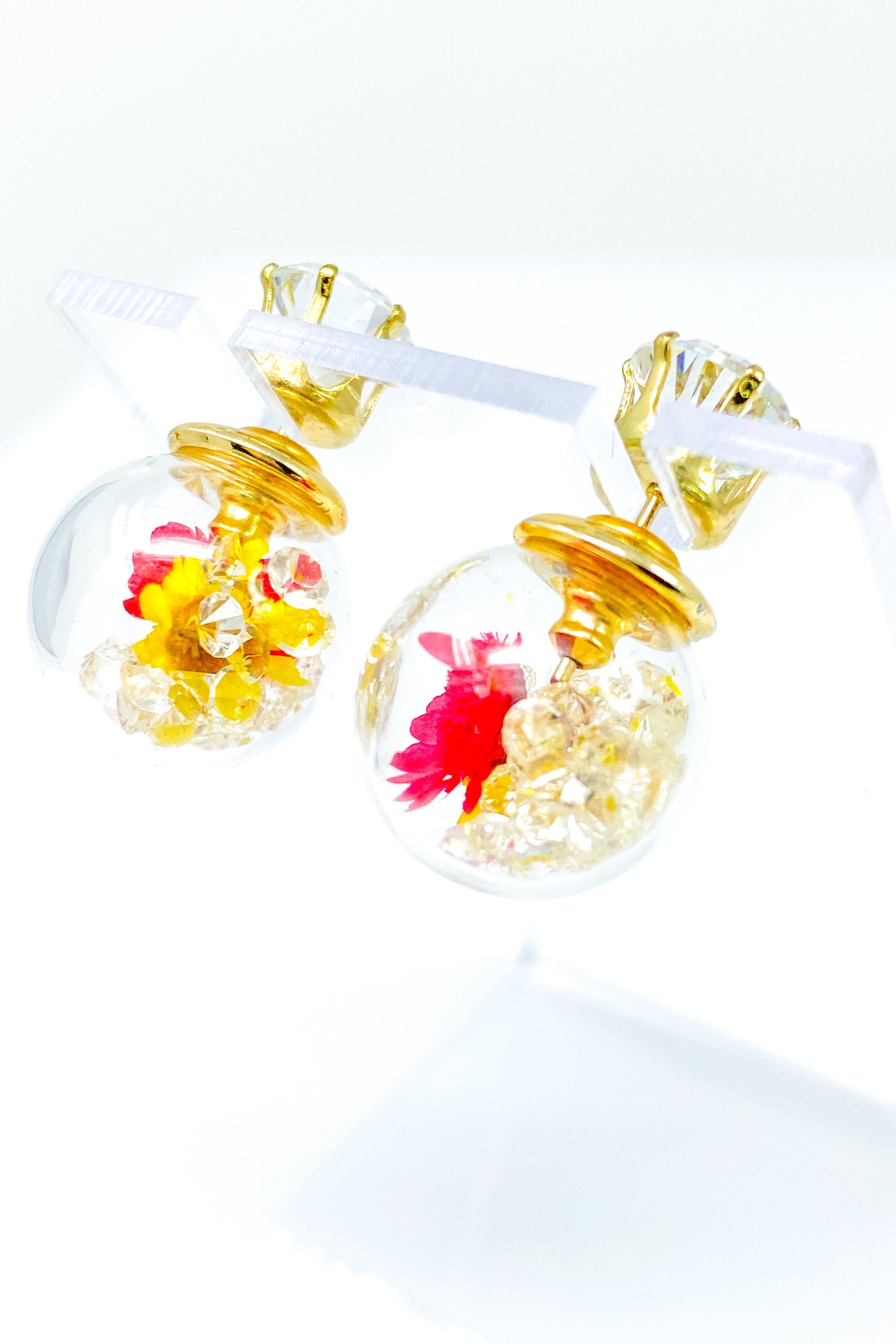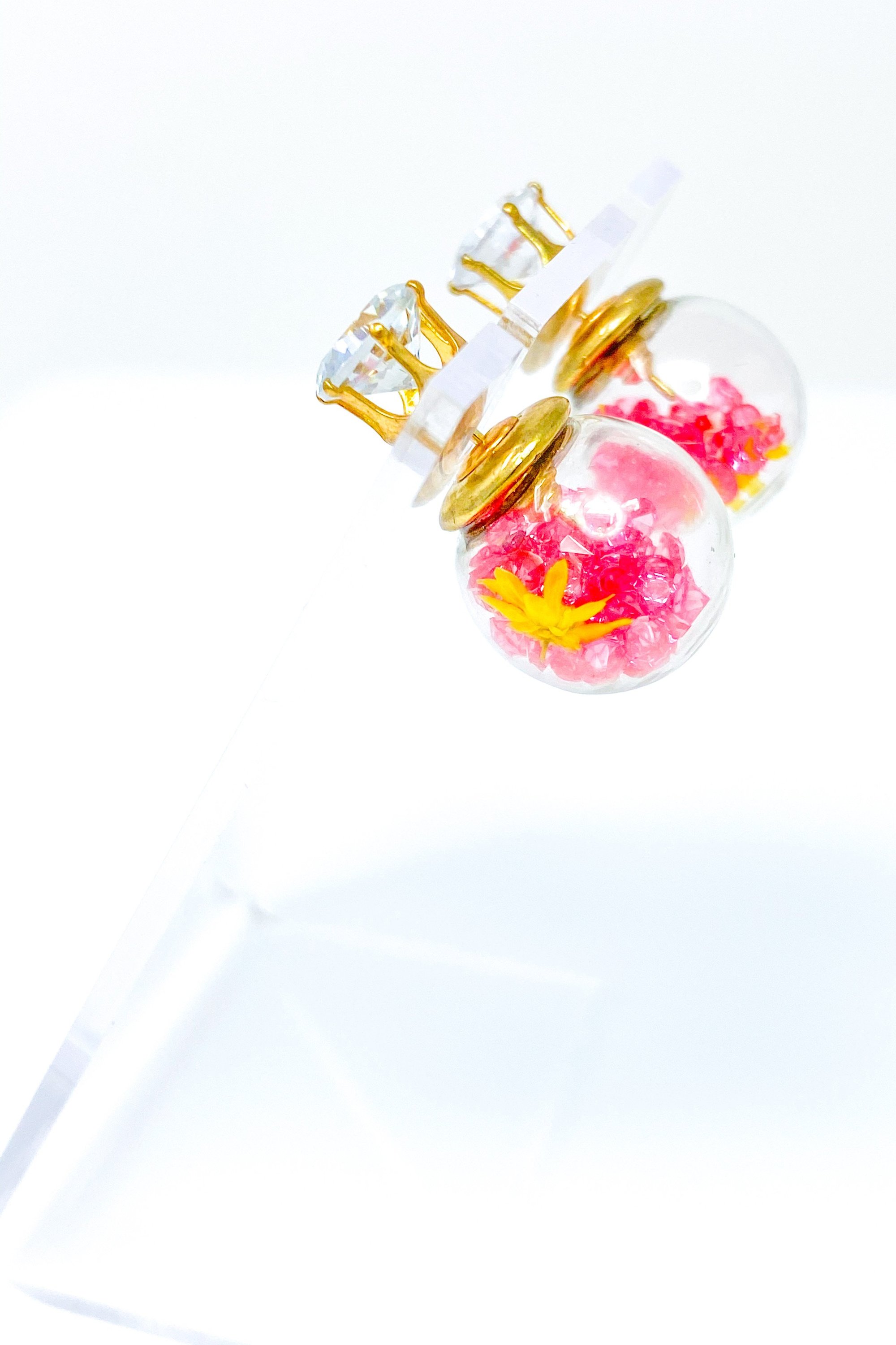 Introducing the stunning Perennial Ice Studs, a perfect blend of elegance and creativity. These unique earrings feature handcrafted moving flowers paired with a chic plastique ice ball design, making them a must-have accessory for any fashion enthusiast. Whether you're dressing up for a special occasion or adding flair to your everyday outfit, these studs will elevate your style effortlessly.
