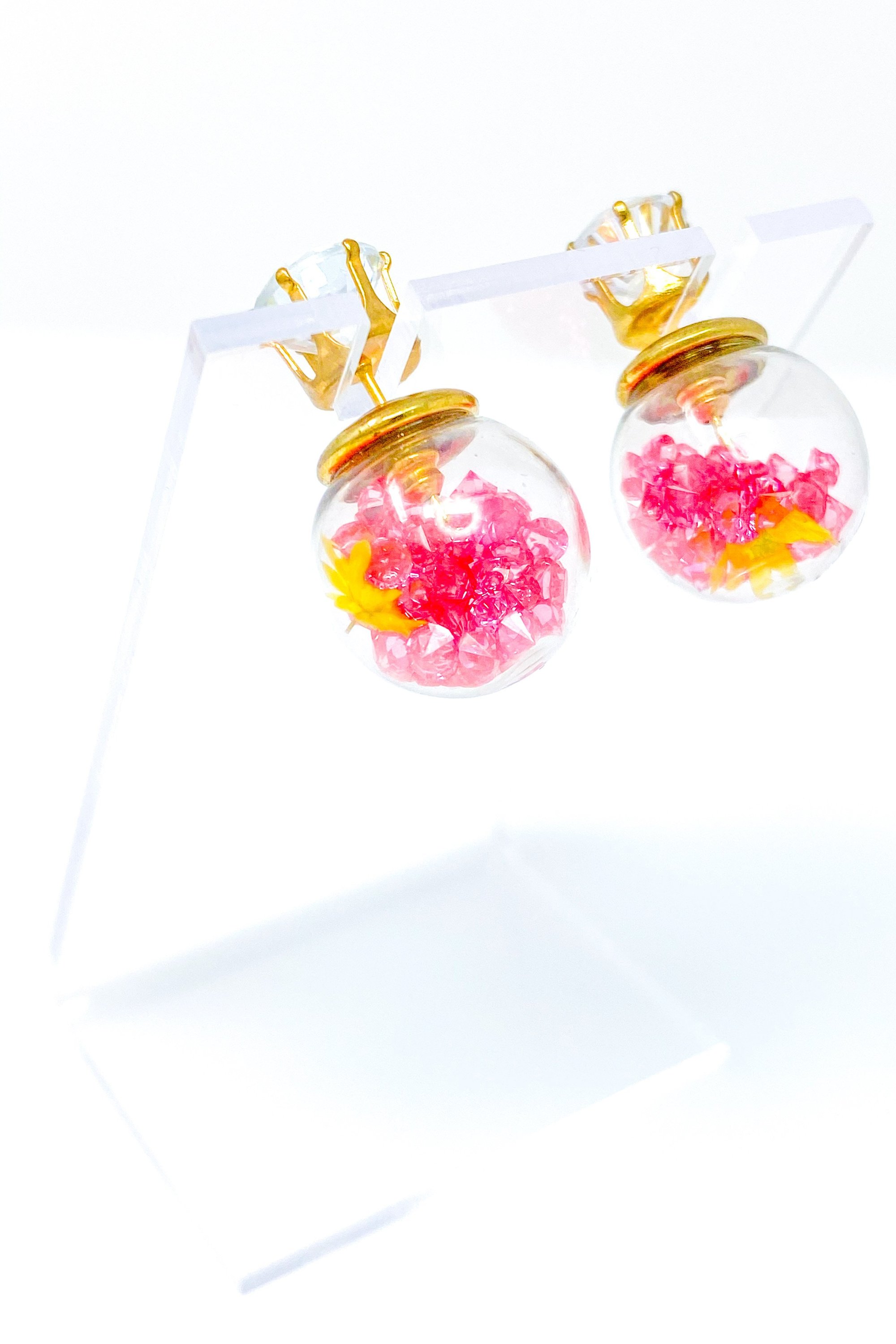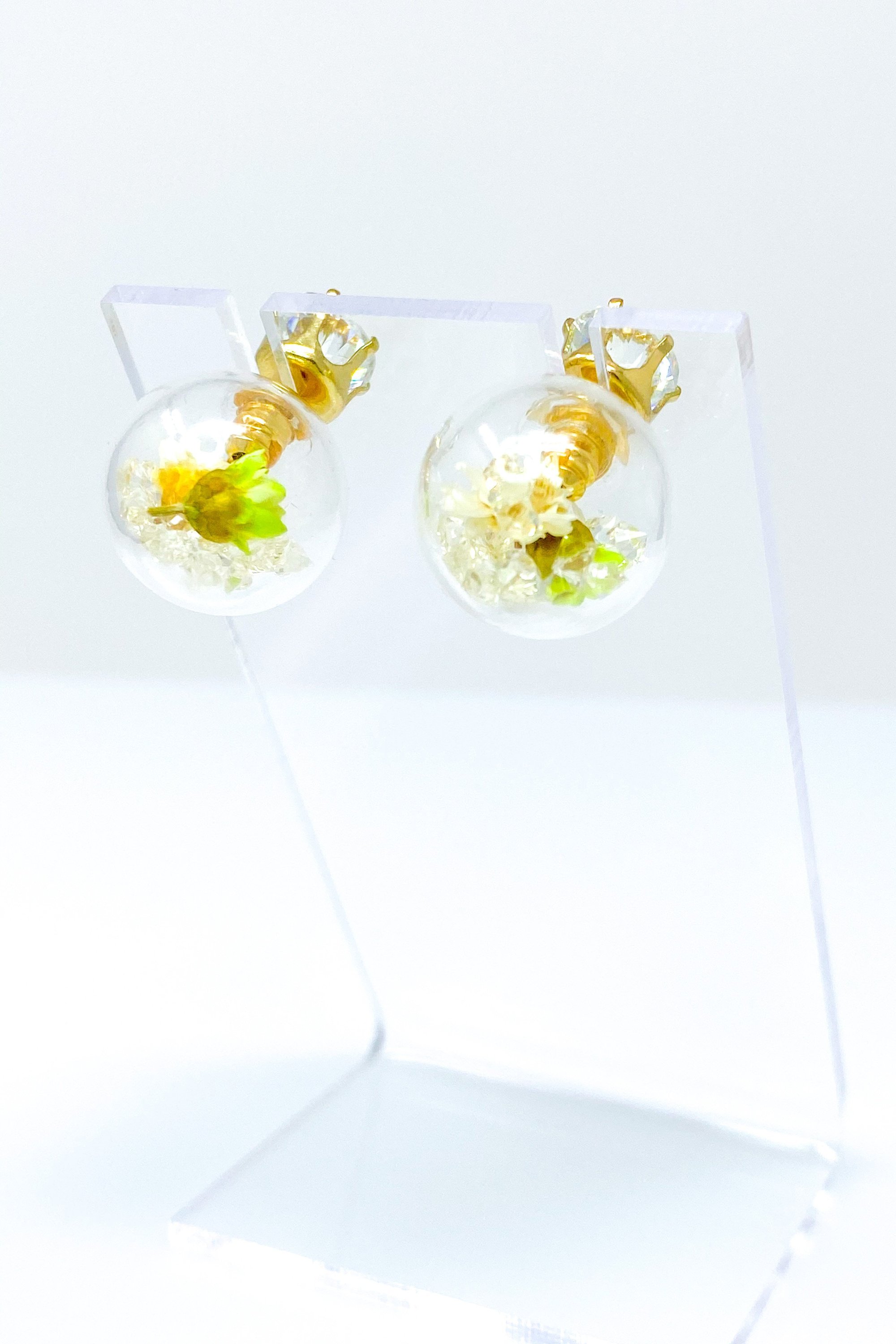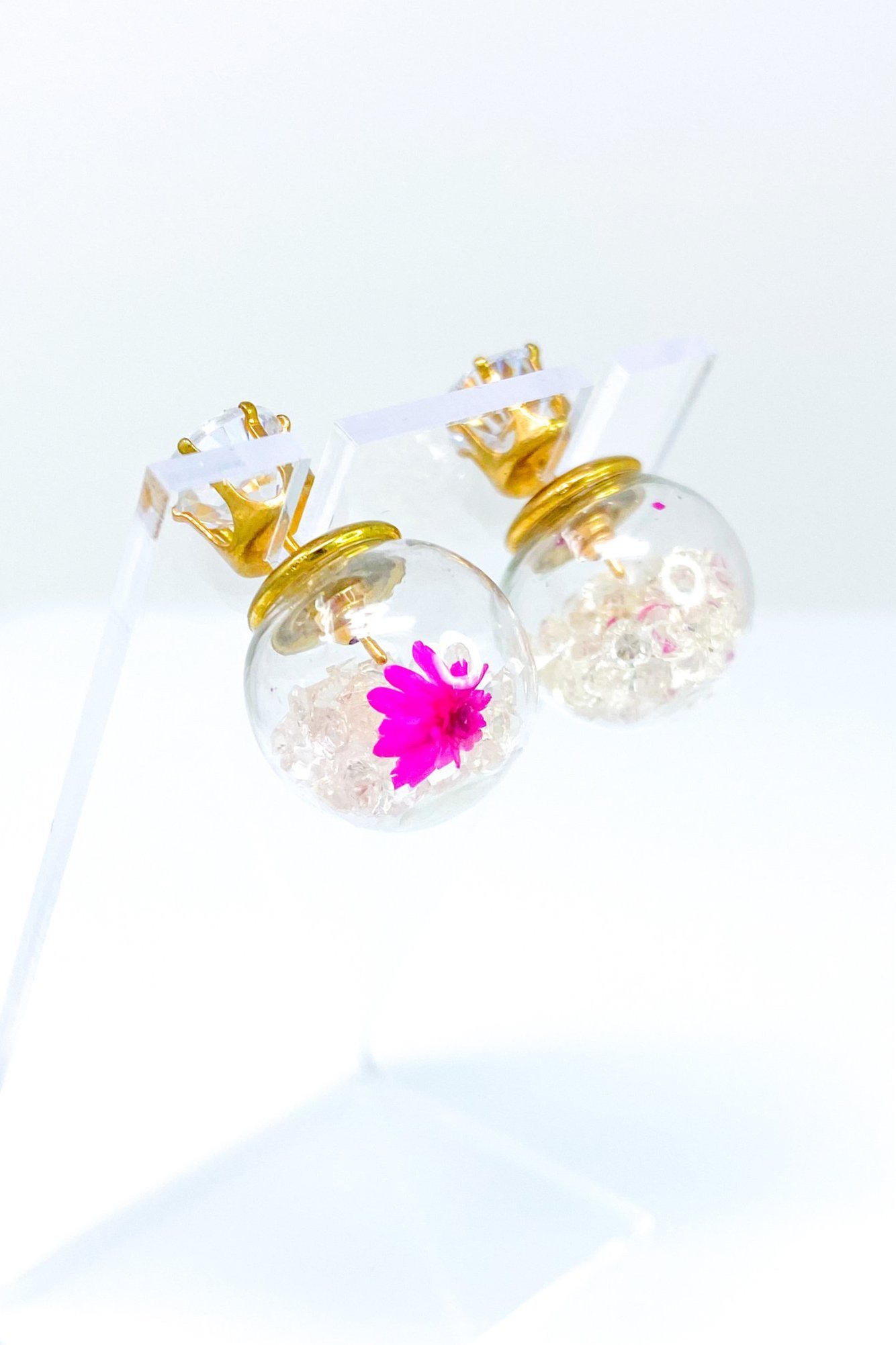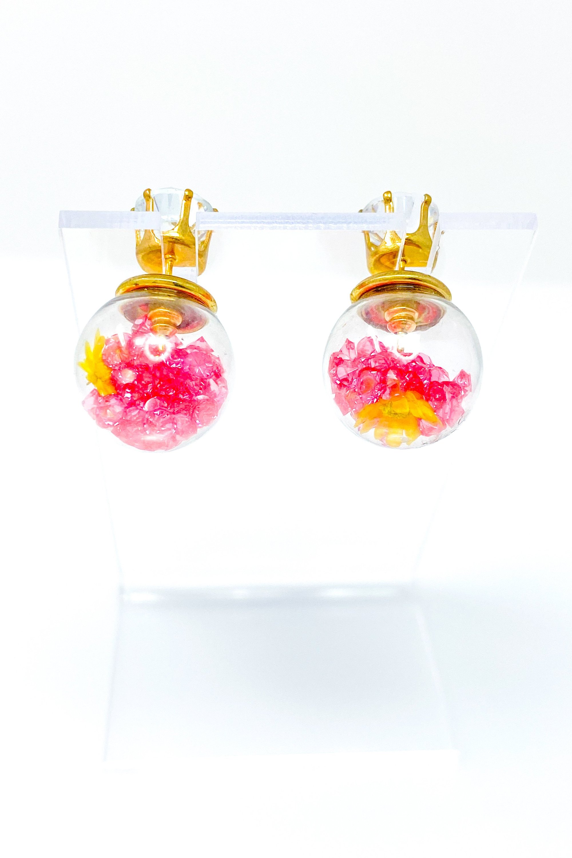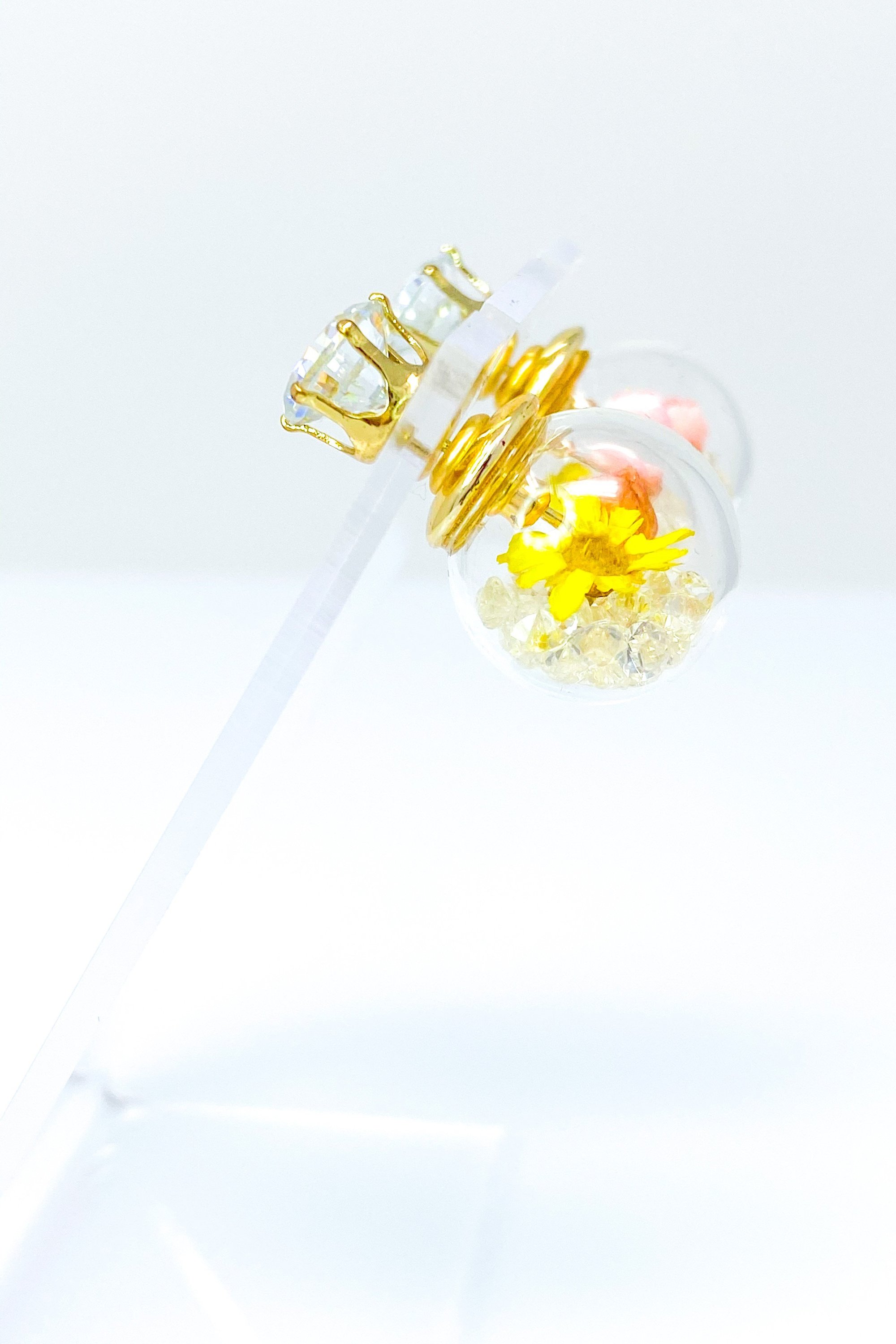 Introducing the stunning Perennial Ice Studs, a perfect blend of elegance and creativity. These unique earrings feature handcrafted moving flowers paired with a chic plastique ice ball design, making them a must-have accessory for any fashion enthusiast. Whether you're dressing up for a special occasion or adding flair to your everyday outfit, these studs will elevate your style effortlessly.