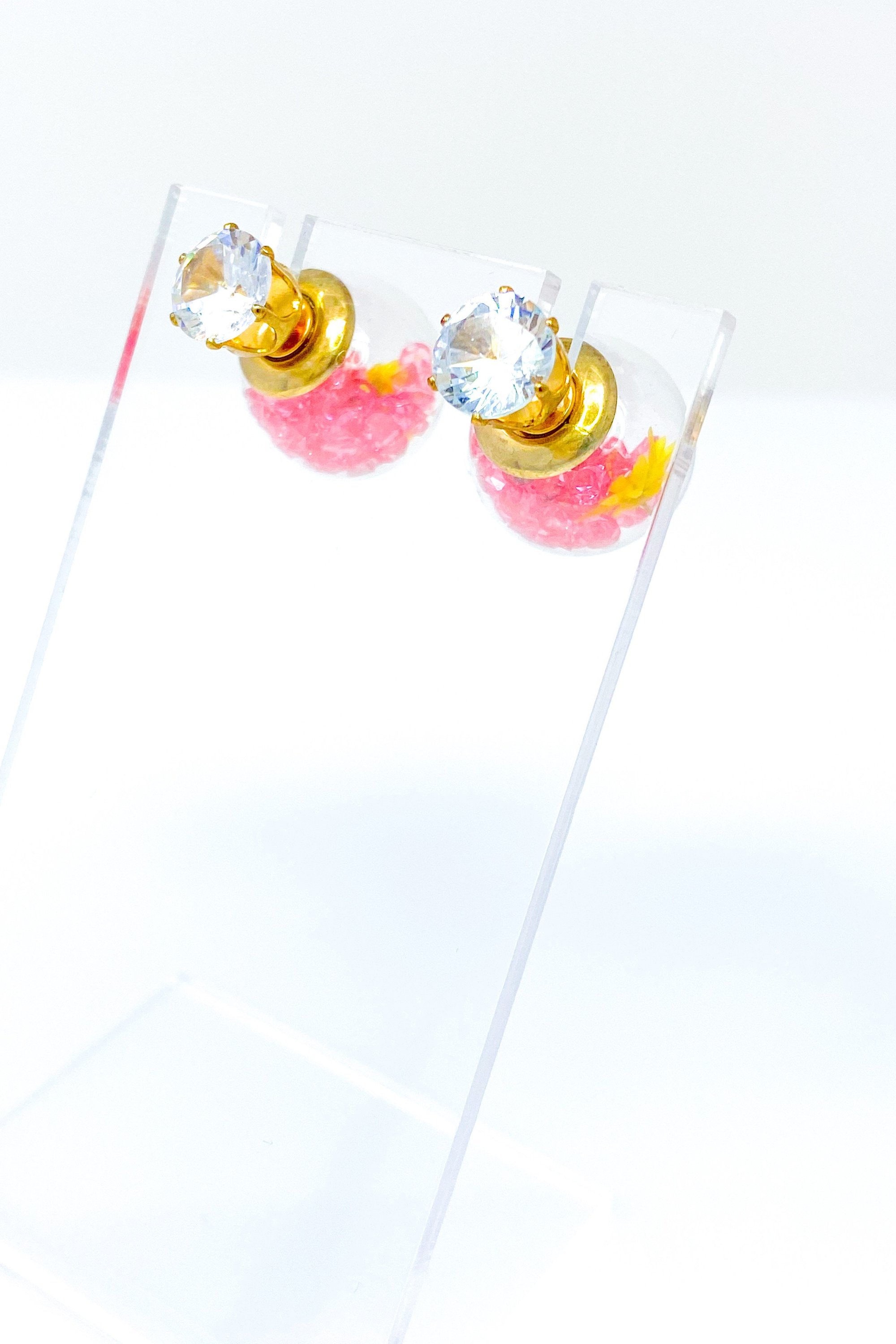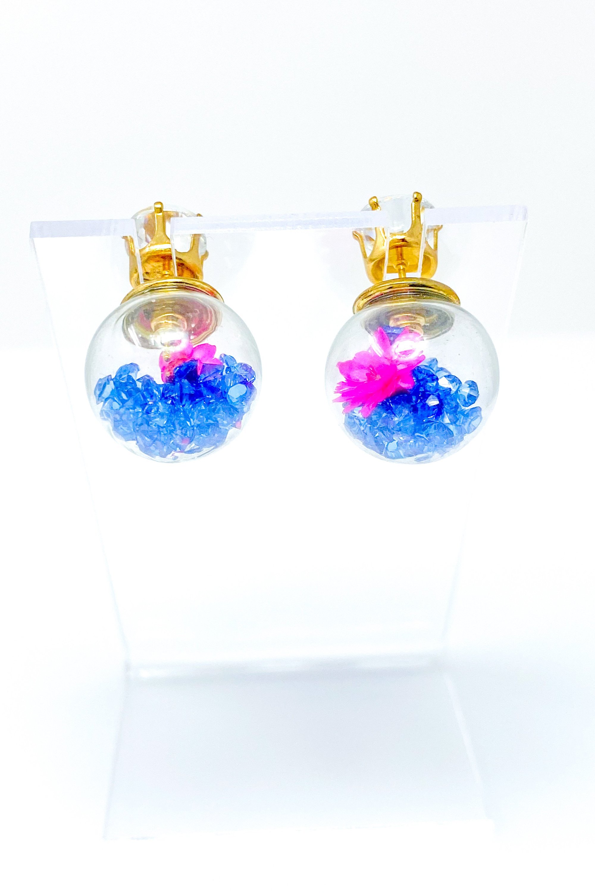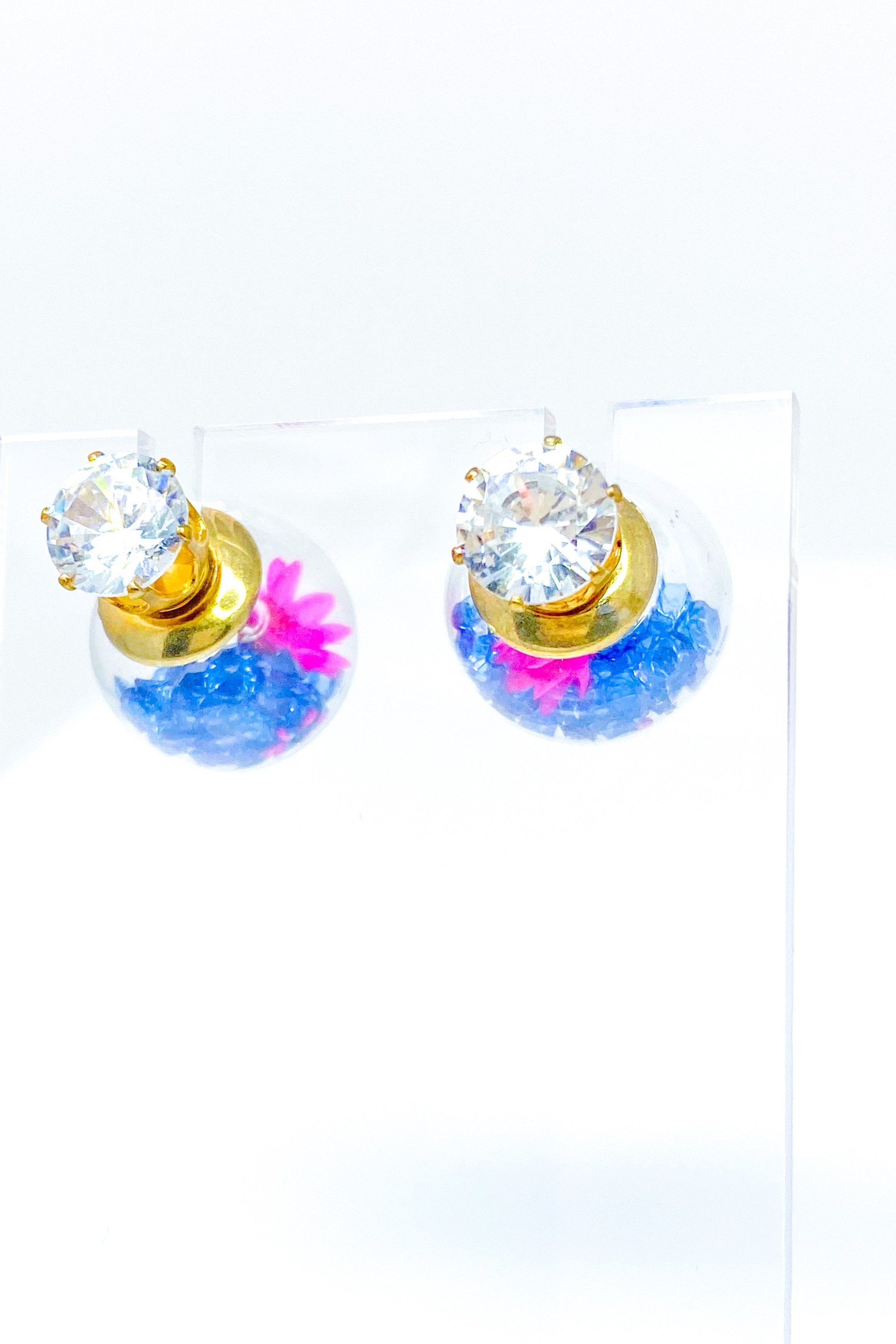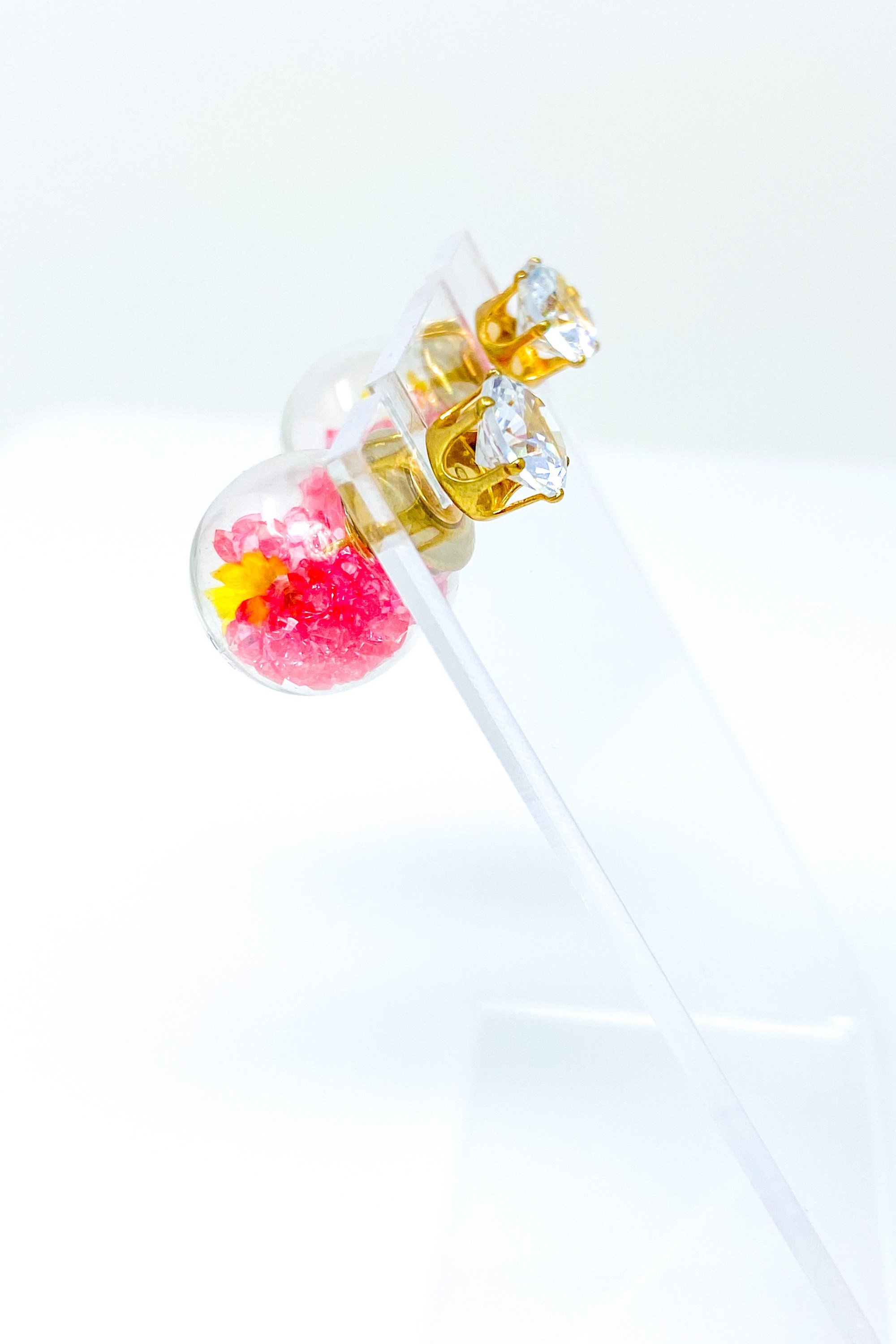 Introducing the stunning Perennial Ice Studs, a perfect blend of elegance and creativity. These unique earrings feature handcrafted moving flowers paired with a chic plastique ice ball design, making them a must-have accessory for any fashion enthusiast. Whether you're dressing up for a special occasion or adding flair to your everyday outfit, these studs will elevate your style effortlessly.