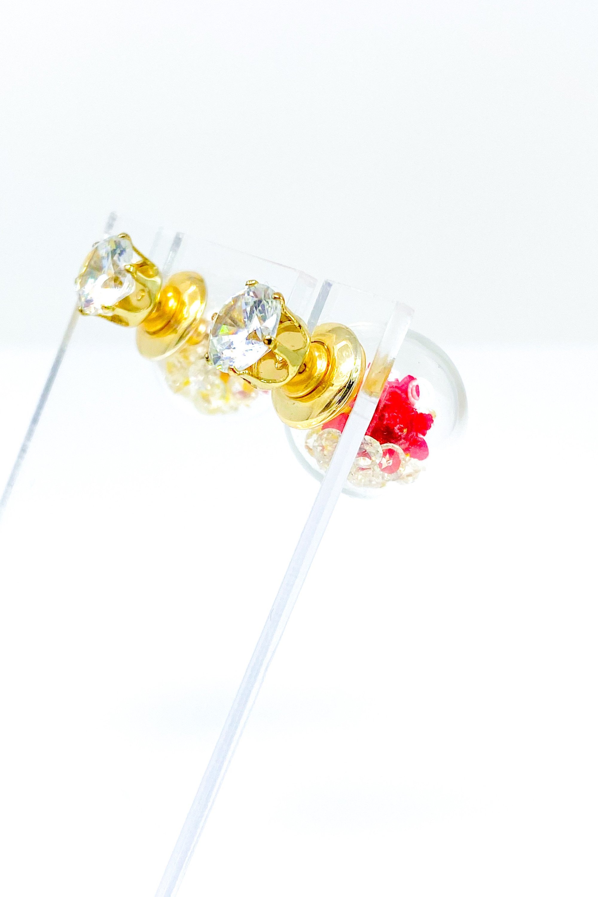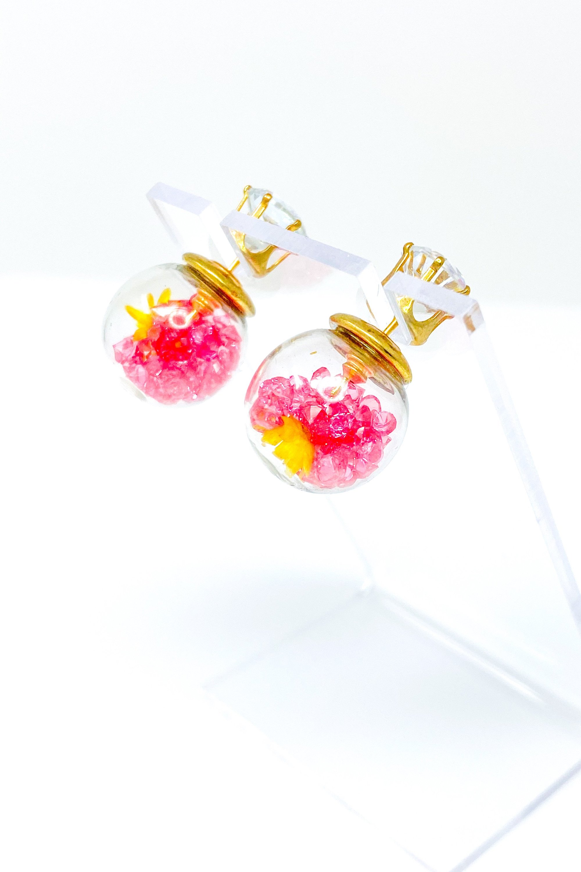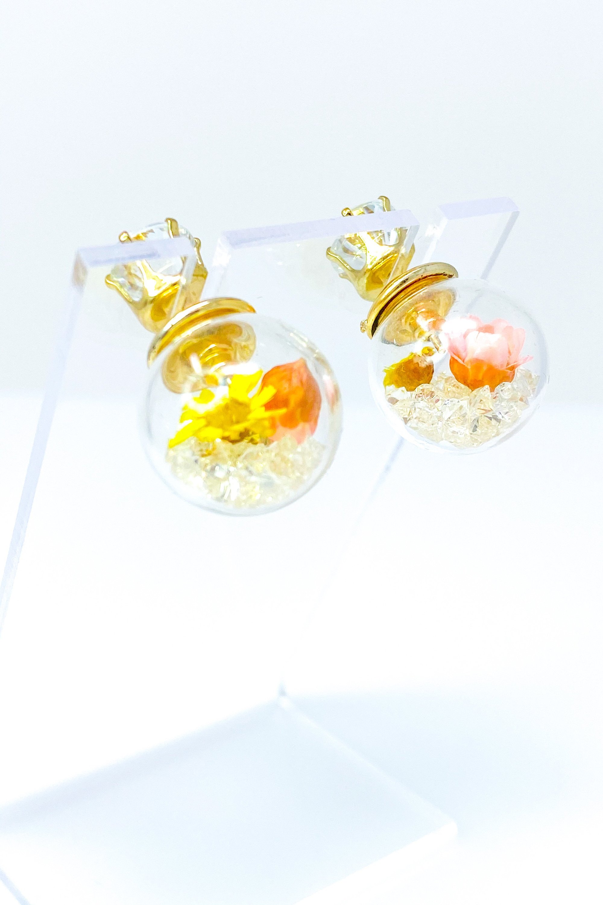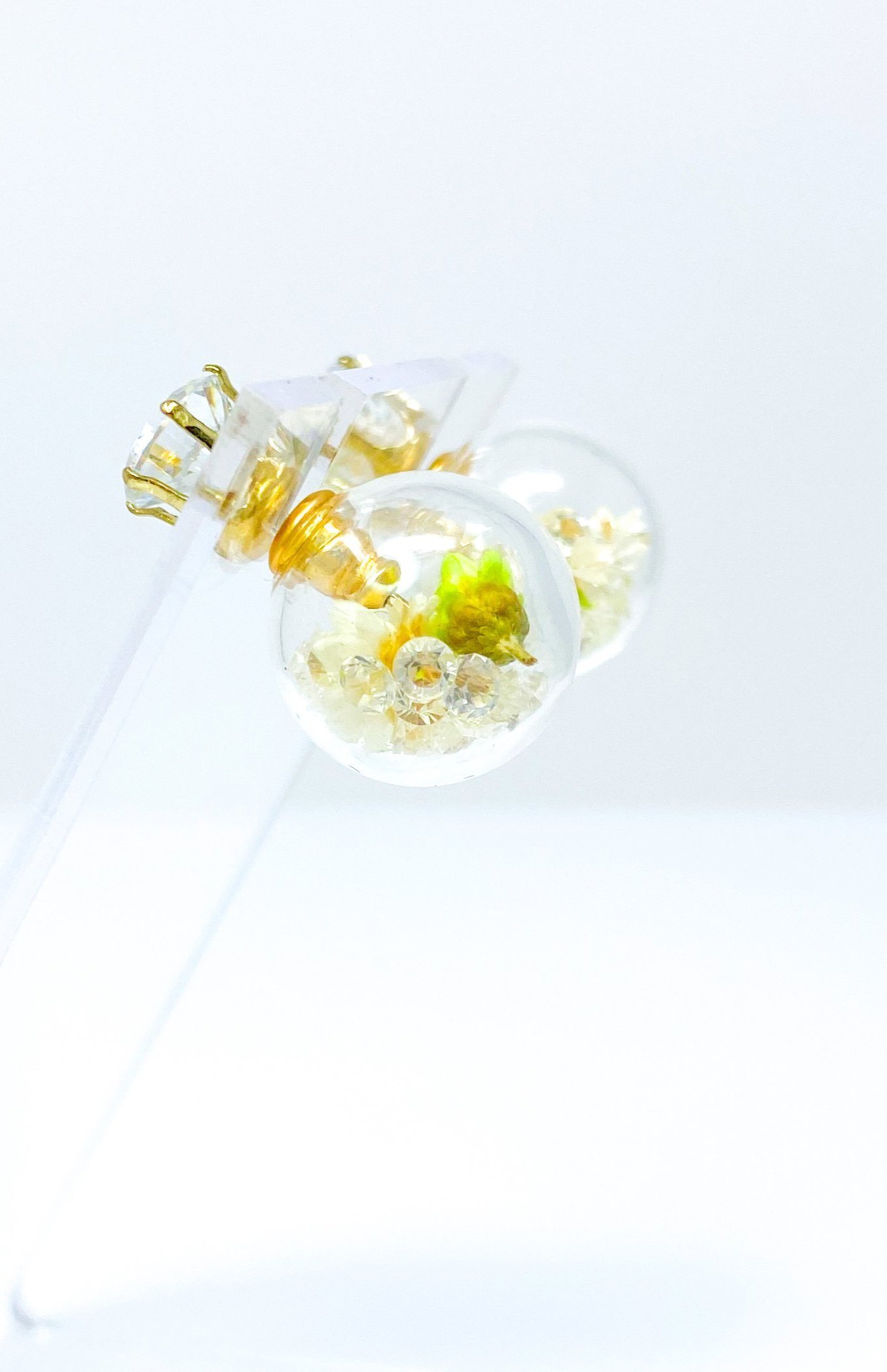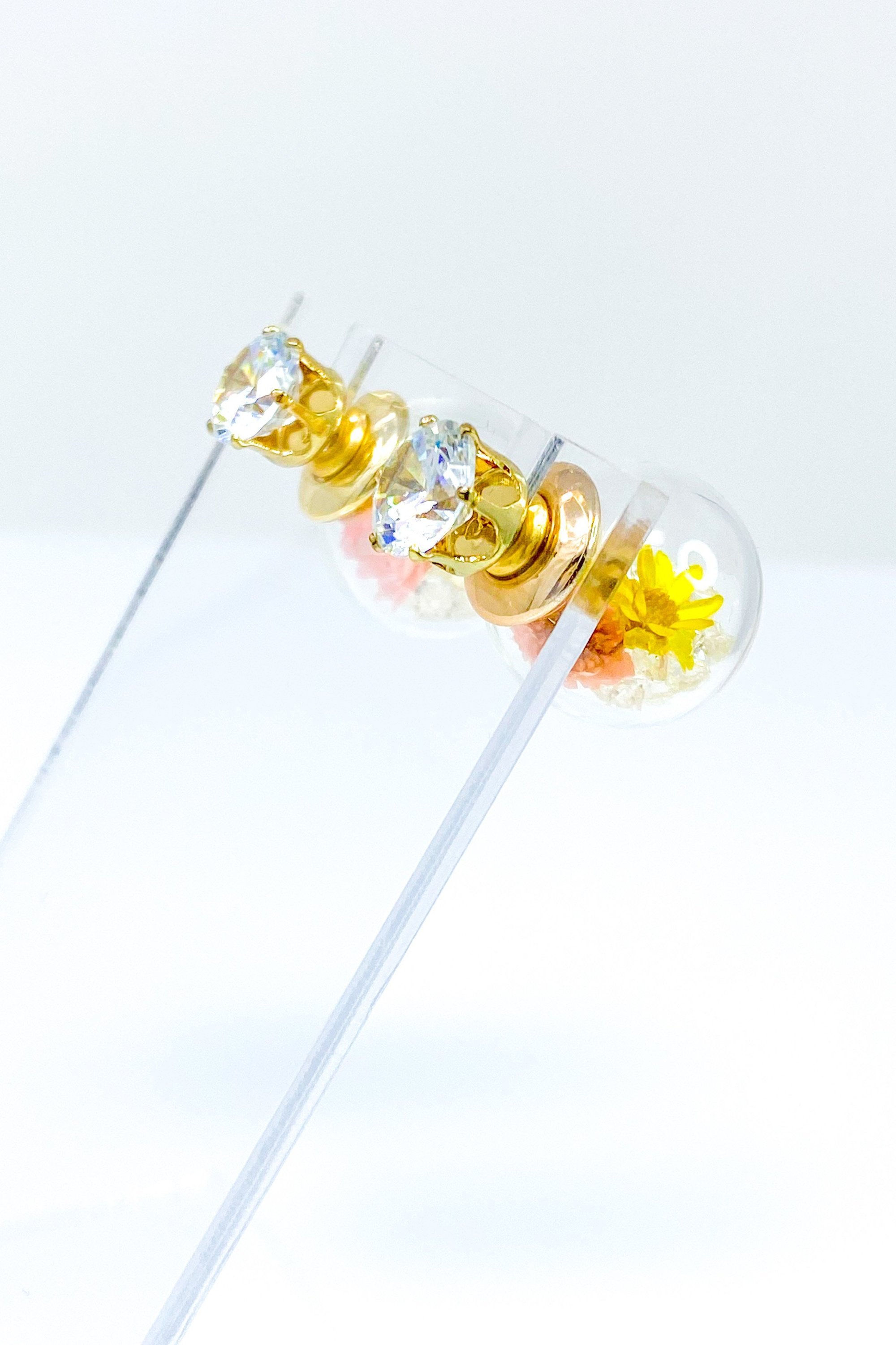 Introducing the stunning Perennial Ice Studs, a perfect blend of elegance and creativity. These unique earrings feature handcrafted moving flowers paired with a chic plastique ice ball design, making them a must-have accessory for any fashion enthusiast. Whether you're dressing up for a special occasion or adding flair to your everyday outfit, these studs will elevate your style effortlessly.