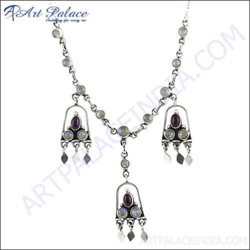 Elevate your jewelry collection with the Stunning African Amethyst & Rainbow Moonstone Silver Gemstone Necklace. Order yours today and experience the perfect blend of style, quality, and craftsmanship that Art Palace is known for. This necklace is not just an accessory; it is a statement piece that reflects your unique personality and taste.
