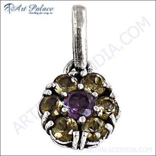 Dropship Stunning Amethyst and Citrine Gemstone 925 Silver Pendant