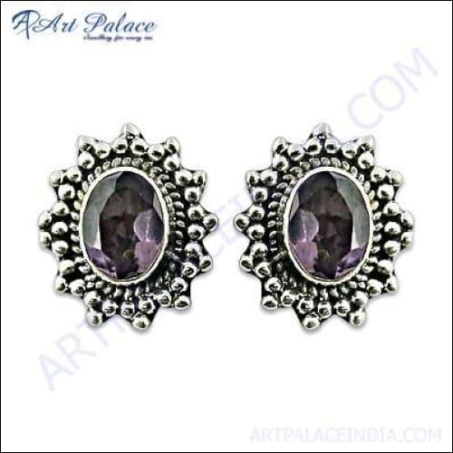 Dropship Stunning Amethyst Gemstone Silver Earrings - Hot Designer Jewelry