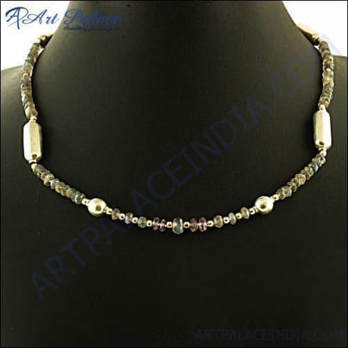 Elevate your style with the stunning Amethyst & Labradorite Beaded Silver Necklace, a piece that beautifully combines the regal allure of amethyst with the enigmatic charm of labradorite. This exquisite necklace is not just a piece of jewelry; it is a statement of elegance and sophistication that can transform any outfit.