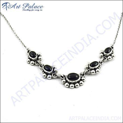 The Lovely Black Onyx Silver Necklace is crafted from the finest raw materials, ensuring that each piece meets our rigorous quality standards. Our skilled artisans pay meticulous attention to detail, resulting in a necklace that is not only visually stunning but also durable and long-lasting. The sleek design of the necklace makes it a versatile accessory that can elevate any outfit, whether it's for a formal event or a casual outing.