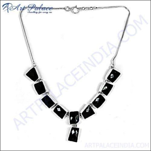 Introducing the Black Onyx Silver Necklace, a stunning piece of jewelry that is sure to make a statement. Crafted by Art Palace, a renowned company with over 40 years of experience in the industry, this necklace is a true representation of elegance and style.