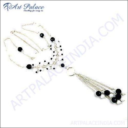Introducing the Hot! Dazzling Black Onyx & White Onyx Gemstone Silver Necklace, a truly exquisite piece that combines stunning design with timeless elegance. Crafted by Art Palace, Jaipur, a renowned company with a legacy of excellence since 1981, this necklace is a true masterpiece. Made from high-quality silver and featuring the mesmerizing combination of black onyx and white onyx gemstones, this necklace is sure to turn heads wherever you go.