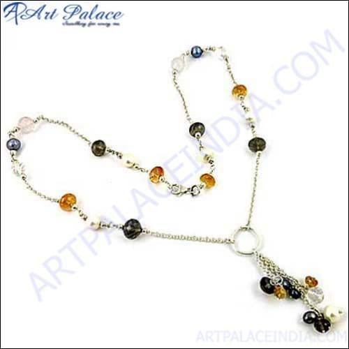 Enhance your look with the Stunning Black Pearl & Citrine Silver Necklace. This exquisite piece of jewelry is designed to elevate your style and add a touch of sophistication to any outfit. Crafted with precision by Art Palace, a renowned jewelry manufacturer based in Jaipur, this necklace is not just an accessory; it's a statement piece that embodies elegance and timeless beauty.