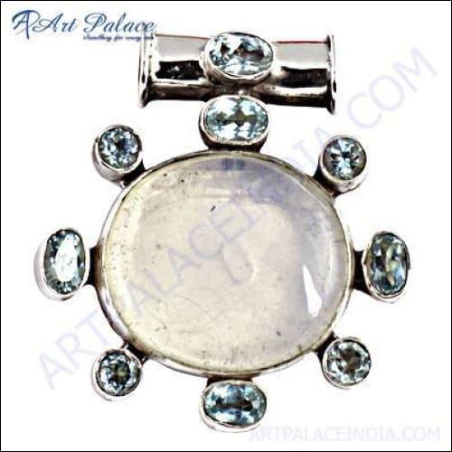 Featuring a mesmerizing combination of Blue Topaz and Opal, this pendant exudes a captivating charm. The dazzling Blue Topaz stone, known for its calming and soothing properties, adds a touch of tranquility to the design. The Opal stone, with its iridescent hues, creates a mesmerizing play of colors that catches the light from every angle.