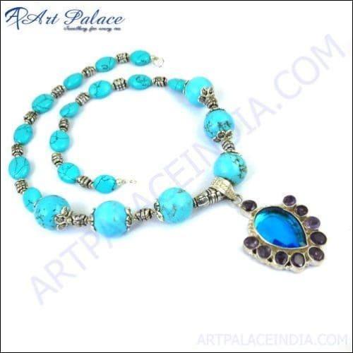 Welcome to Art Palace, Jaipur, where we have been dedicated to creating exceptional jewelry pieces since 1981. Our Blue Topaz Pendant Necklace with Turquoise beads is a stunning representation of elegance and style, designed to captivate and enhance your jewelry collection.