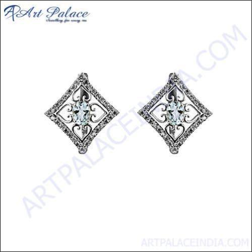 Dropship Stunning Blue Topaz & White CZ 925 Silver Earrings - Gorgeous Silver