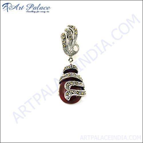 With its unique design and impeccable craftsmanship, this pendant is sure to capture attention and become a cherished piece in your jewelry collection. The combination of marcasite and red onyx not only enhances its beauty but also adds a sense of timeless elegance that transcends trends. This pendant is perfect for those who appreciate fine jewelry that tells a story.