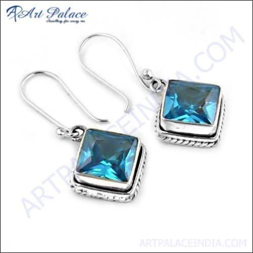 Dropship Stunning Clear Blue CZ Gemstone Silver Earrings - 925 Sterling Jewelry