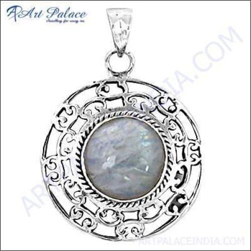 Introducing the Stunning Designer Rainbow Moonstone Silver Pendant, a remarkable piece of jewelry that embodies elegance and creativity. This exquisite pendant is crafted from high-quality silver and features a captivating rainbow moonstone, known for its mesmerizing play of colors. Whether you're dressing up for a special occasion or looking for a unique accessory to elevate your everyday style, this pendant is the perfect choice.
