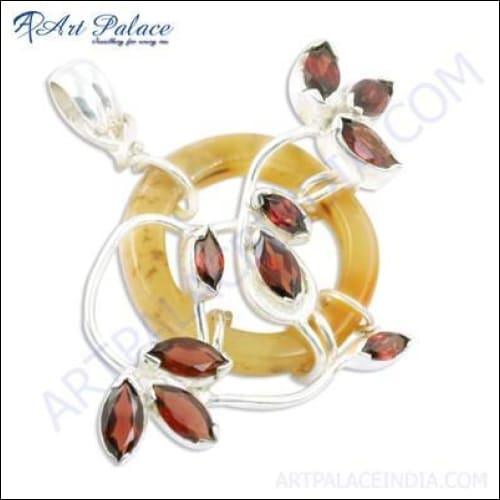 Introducing the stunning Garnet & Yellow Aventurine Gemstone Silver Pendant, a masterpiece that combines elegance and vibrant color. This exquisite piece is meticulously crafted with the finest quality materials, designed to elevate your style and make a lasting impression.