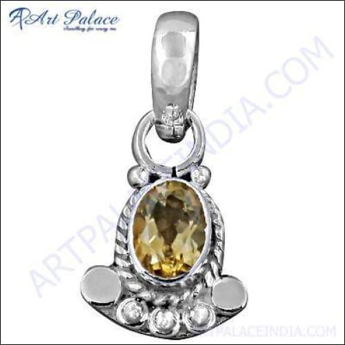 Stunning Indian Designer Citrine Gemstone Silver Pendant showcasing a vibrant citrine stone set in elegant silver design.