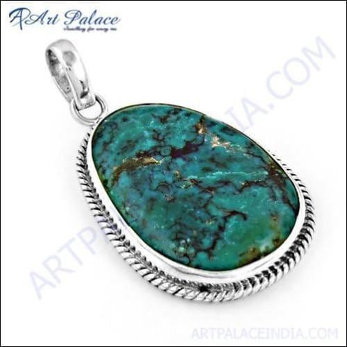 Dropship Stunning Large Turquoise Gemstone Silver Pendant - Hot World Jewelry