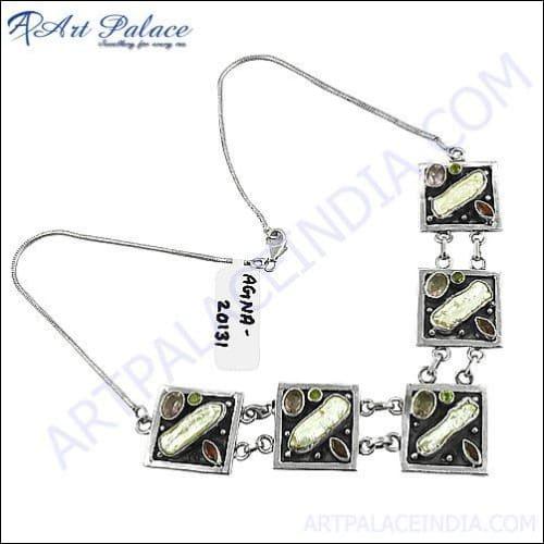Dropship Stunning Multi-Stone Silver Gemstone Necklace - 925 Sterling Silver