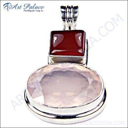 Introducing the Stunning Rose Quartz & Carnelian Gemstone Silver Pendant, a beautiful piece of jewelry that combines elegance and sophistication. This pendant is not just an accessory; it is a statement piece that showcases the natural beauty of rose quartz and carnelian gemstones, set in high-quality silver. Whether you are dressing up for a special occasion or looking for a unique everyday accessory, this pendant is the perfect choice.