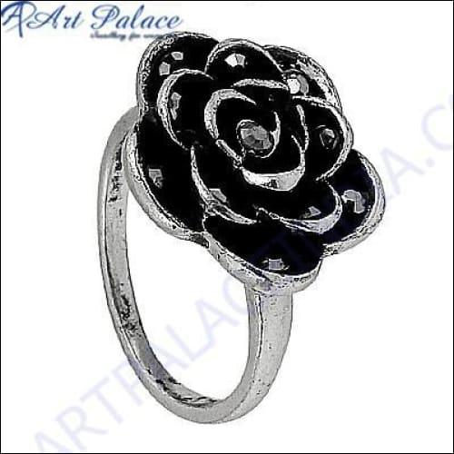 Dropship Stunning Rose Style Gun Metal Gemstone Silver Ring