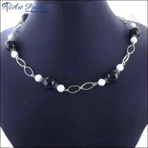 Introducing the Stylish Black Onyx & Pearl Gemstone Beads Necklace, a stunning creation by Art Palace, a renowned jewelry manufacturer based in Jaipur. Since 1981, Art Palace has been dedicated to crafting exquisite jewelry that combines luxury with competitive pricing. This necklace is a perfect example of their commitment to quality and craftsmanship.