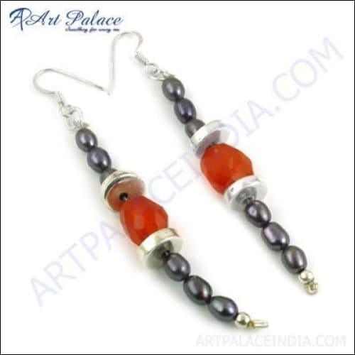 Dropship Stylish Black Pearl & Carnelian Gemstone Silver Earrings - Trendy
