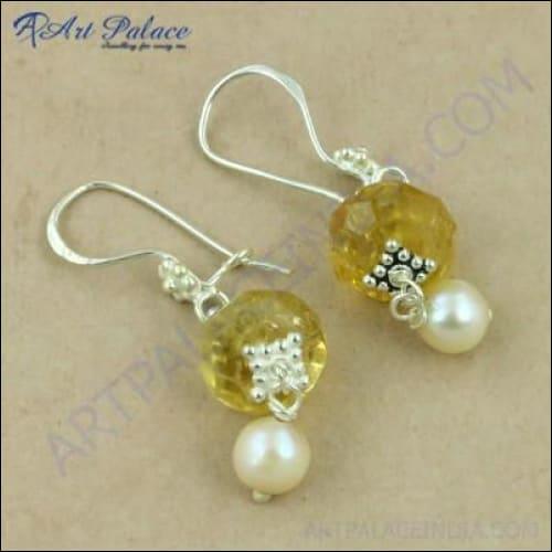 Experience the beauty and elegance of our Stylish Citrine & Pearl Silver Earrings for Women. With their exquisite design and high-quality craftsmanship, they are sure to become a favorite in your jewelry collection.