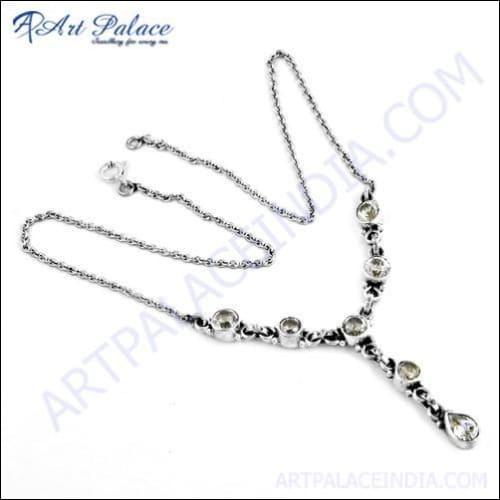 The Stylish Cubic Zirconia Gemstone Silver Necklace is designed to be versatile, making it an essential addition to your jewelry collection. Pair it with a formal dress for a wedding or wear it with a casual outfit for a day out. Its timeless design ensures that it complements any style, making it a go-to accessory for any occasion.