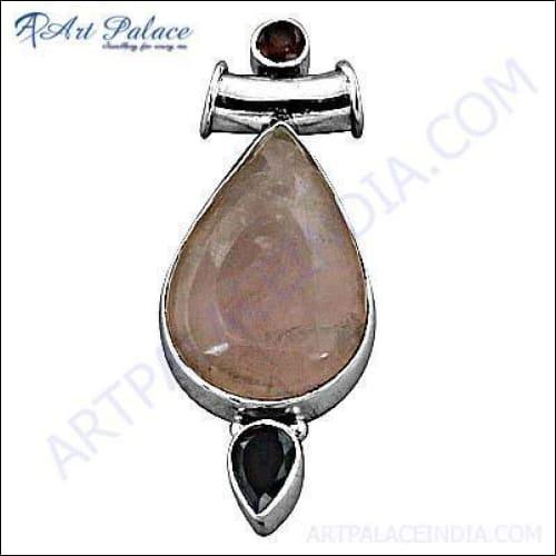 This Stylish Garnet & Rose Quartz Gemstone Silver Pendant is incredibly versatile. Whether you're dressing up for a special event or adding a touch of elegance to your everyday outfit, this pendant is the perfect accessory. Its unique design allows it to complement a variety of styles, making it a must-have addition to your jewelry collection.
